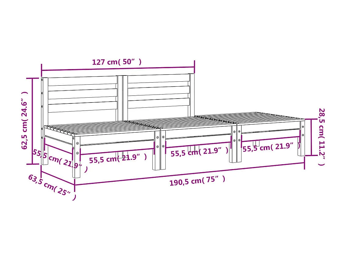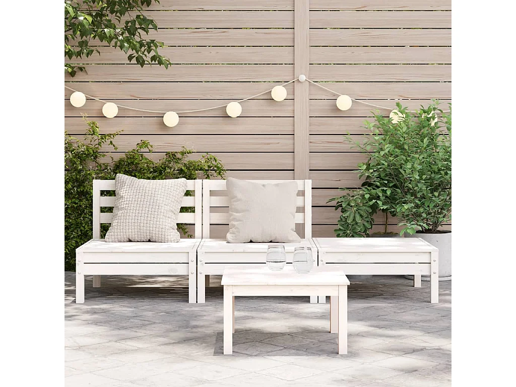 Sofá de jardim branco de 3 lugares em madeira maciça de pinho