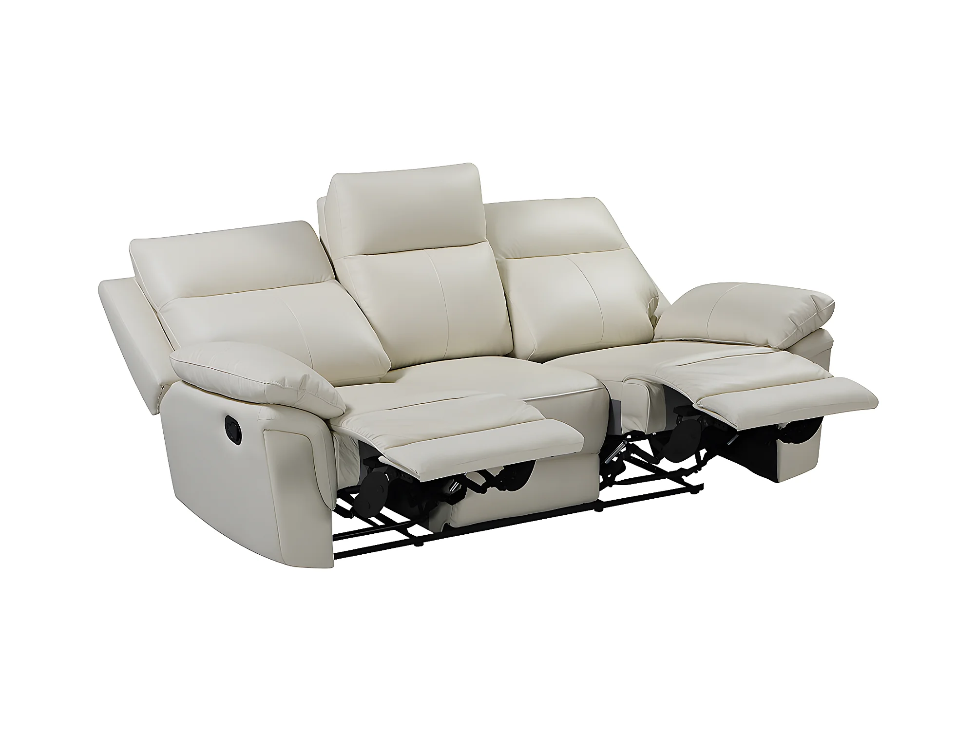 Sofá de 3 lugares relax em pele de búfalo Marfim - PAKITA