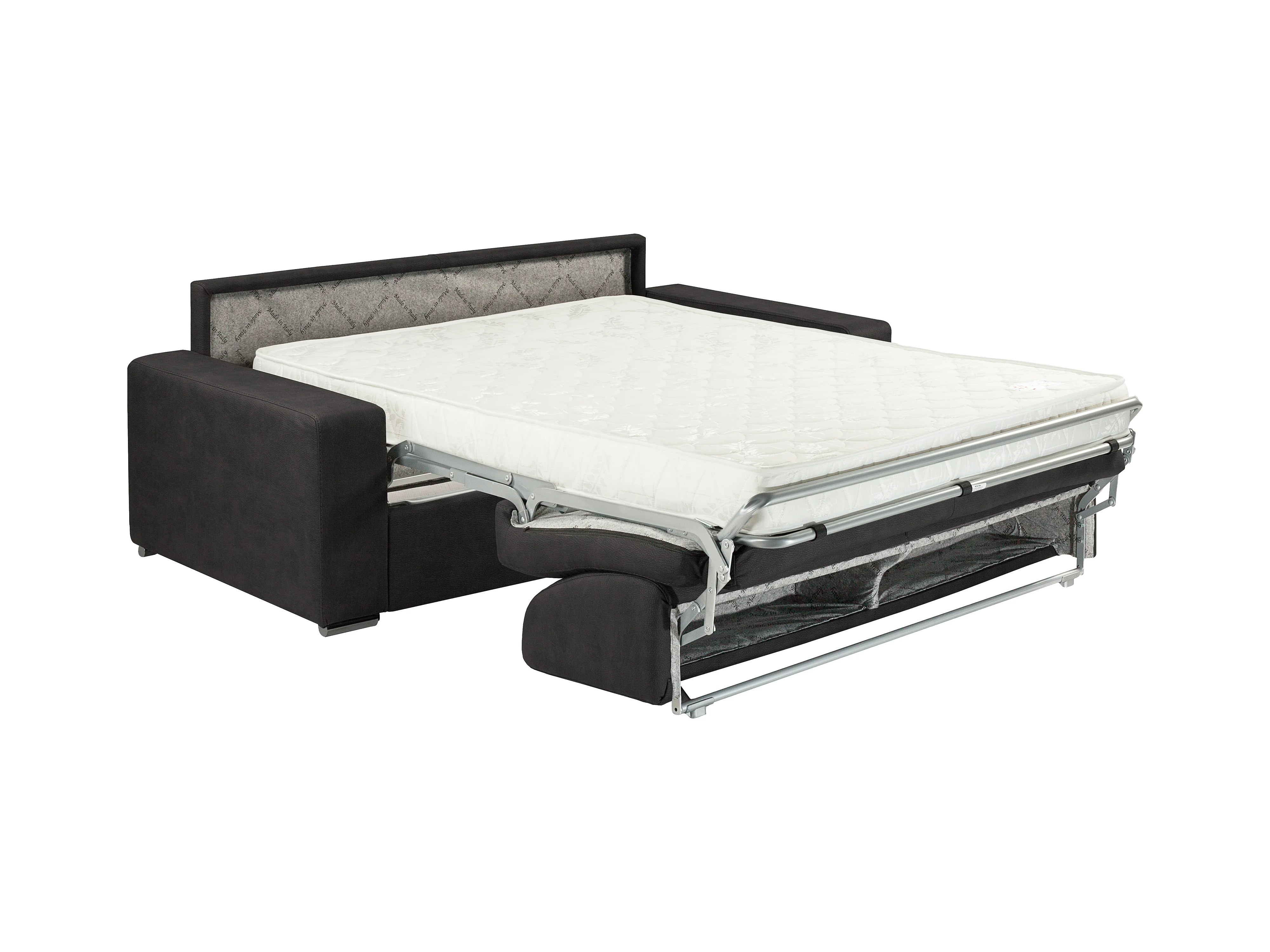 Sofá de 4 lugares convertível de abertura rápida em tecido EMIR antracite com cama de ripas largas de 160 cm e colchão de 14 cm