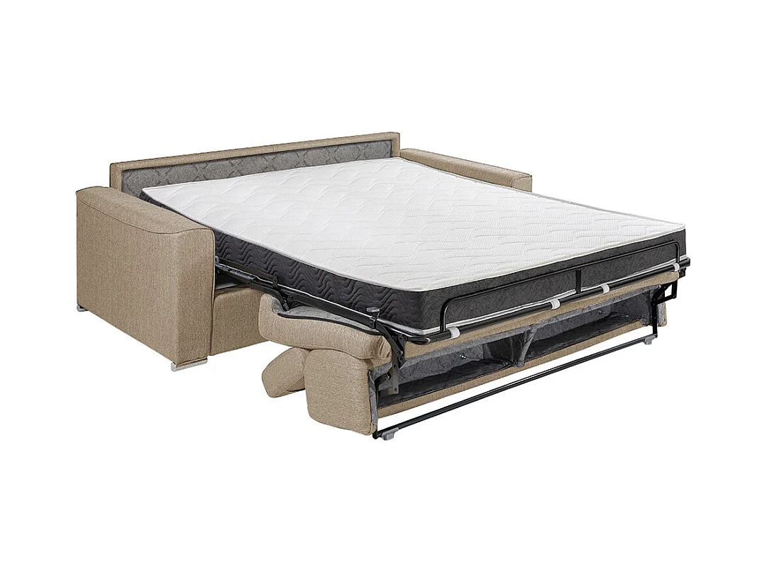 Sofá de 4 lugares convertível de abertura rápida em tecido VIZIR - Bege - Cama de ripas largas 160 cm - Colchão de 16 cm com memória de forma