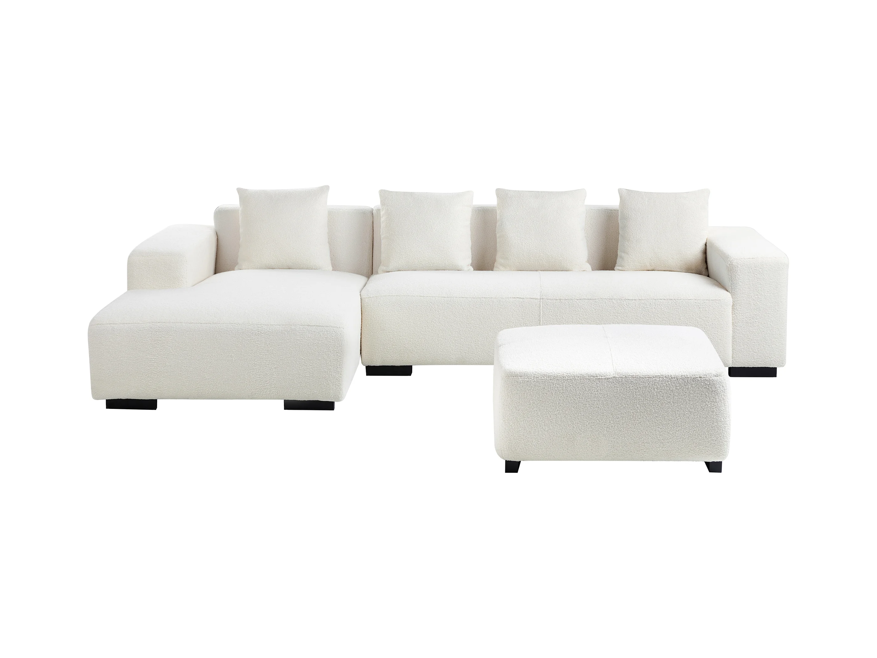 Sofá de canto LUNGO Bouclé Branco com repousa-pés 4 lugares à esquerda