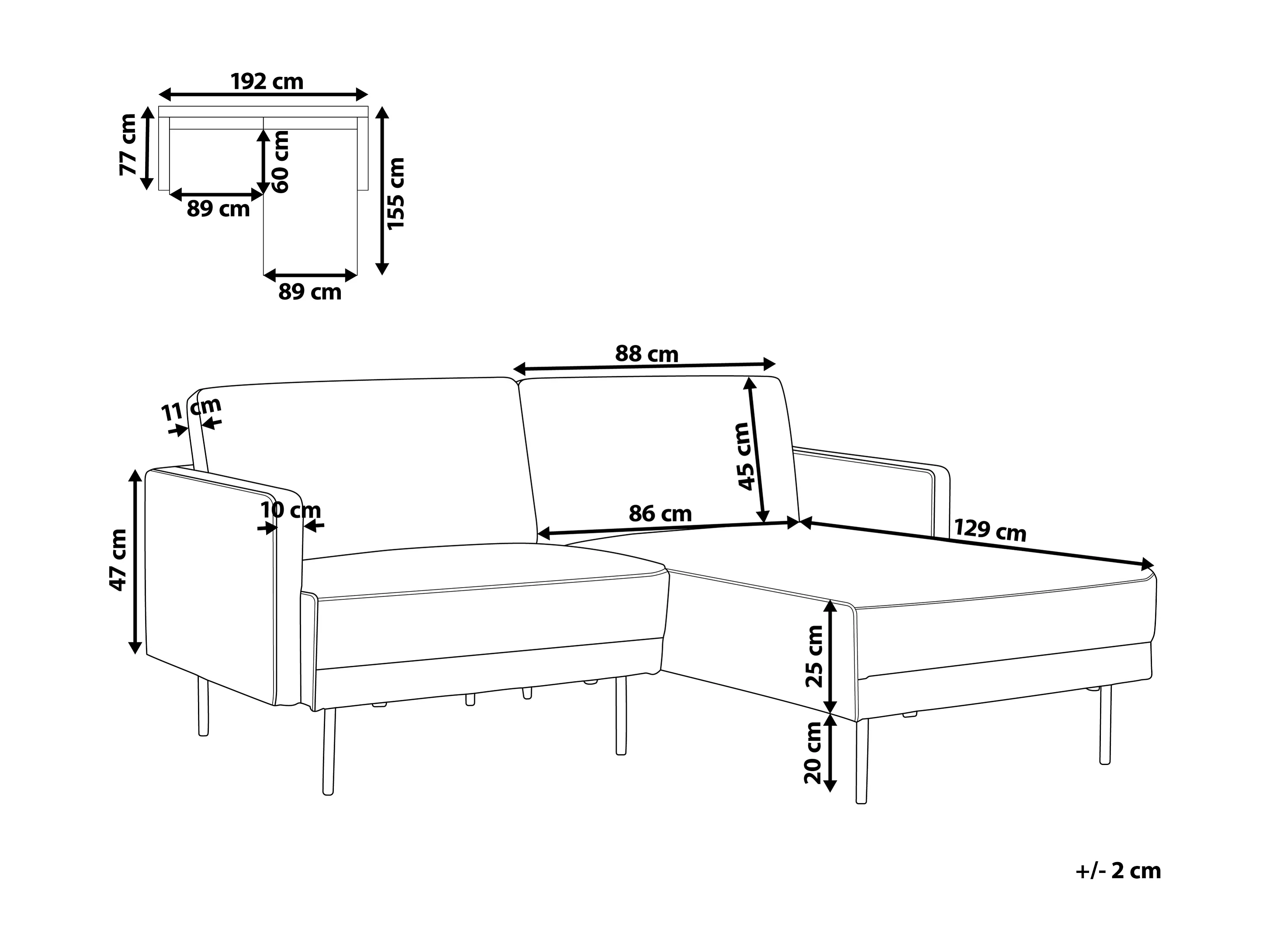 Sofá de canto BREDA Tecido Preto 2 lugares à esquerda