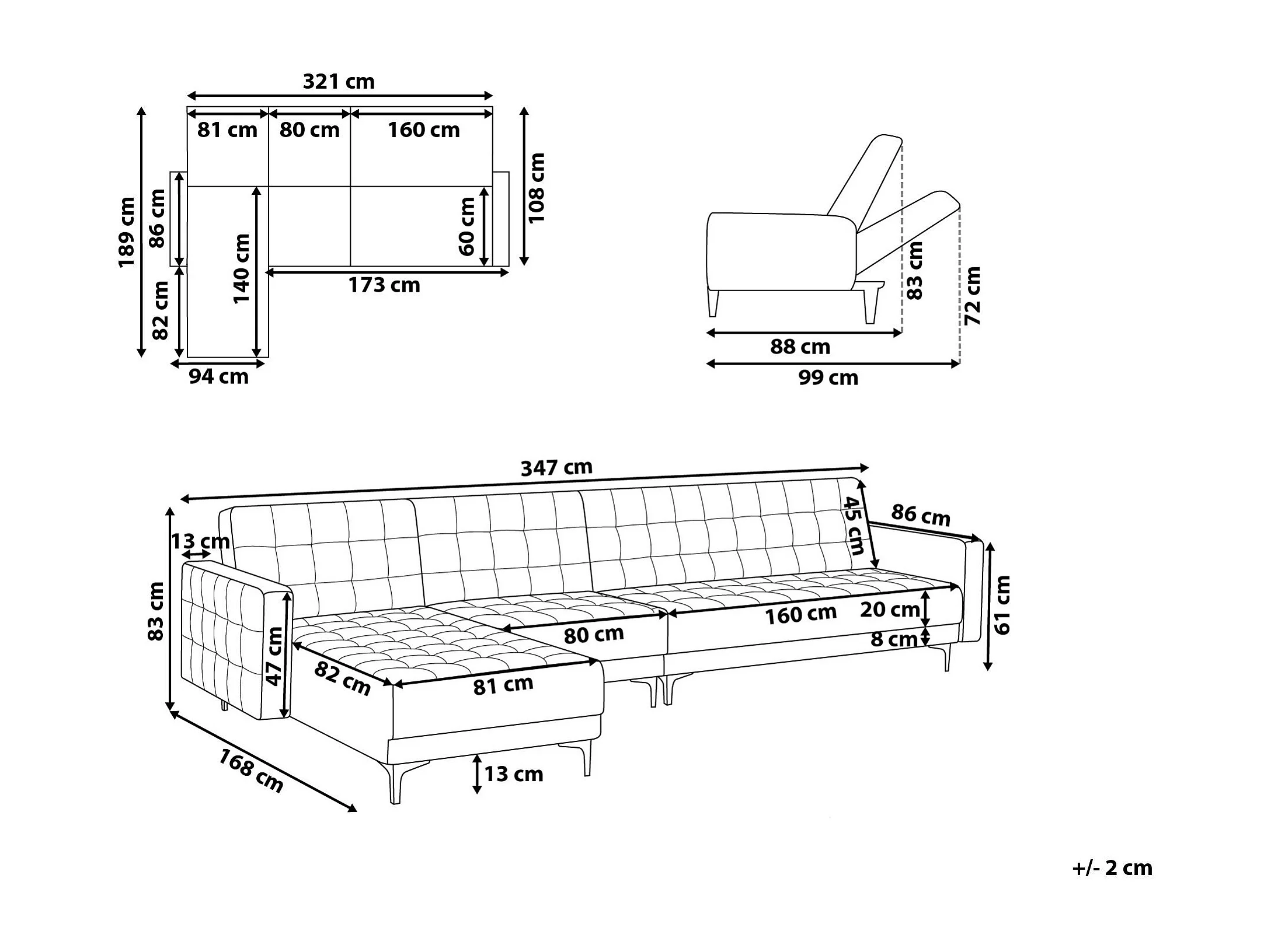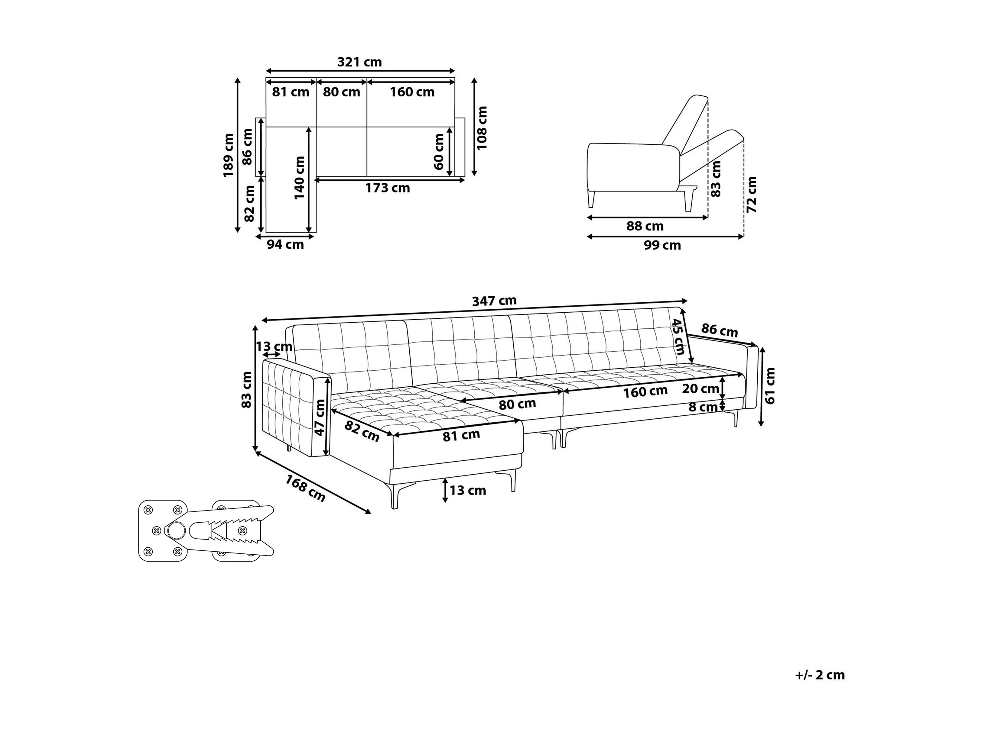 Sofá-cama de canto modular ABERDEEN Veludo Preto 5 lugares à direita