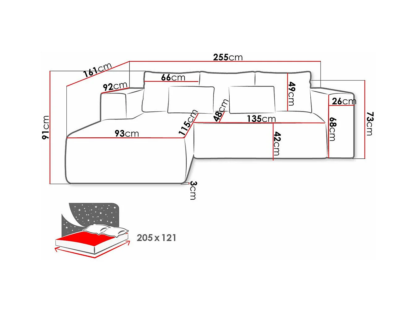 Sofá de canto Comfivo 135, Castanho, Funcionalidade de dormir