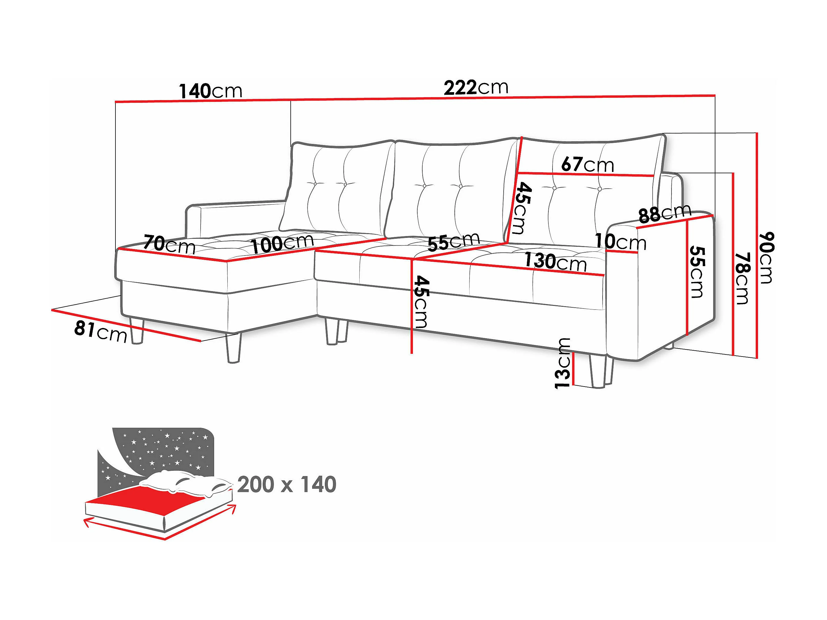 Sofá de canto Boulder 100, Verde, Funcionalidade de dormir, 22x14x9cm