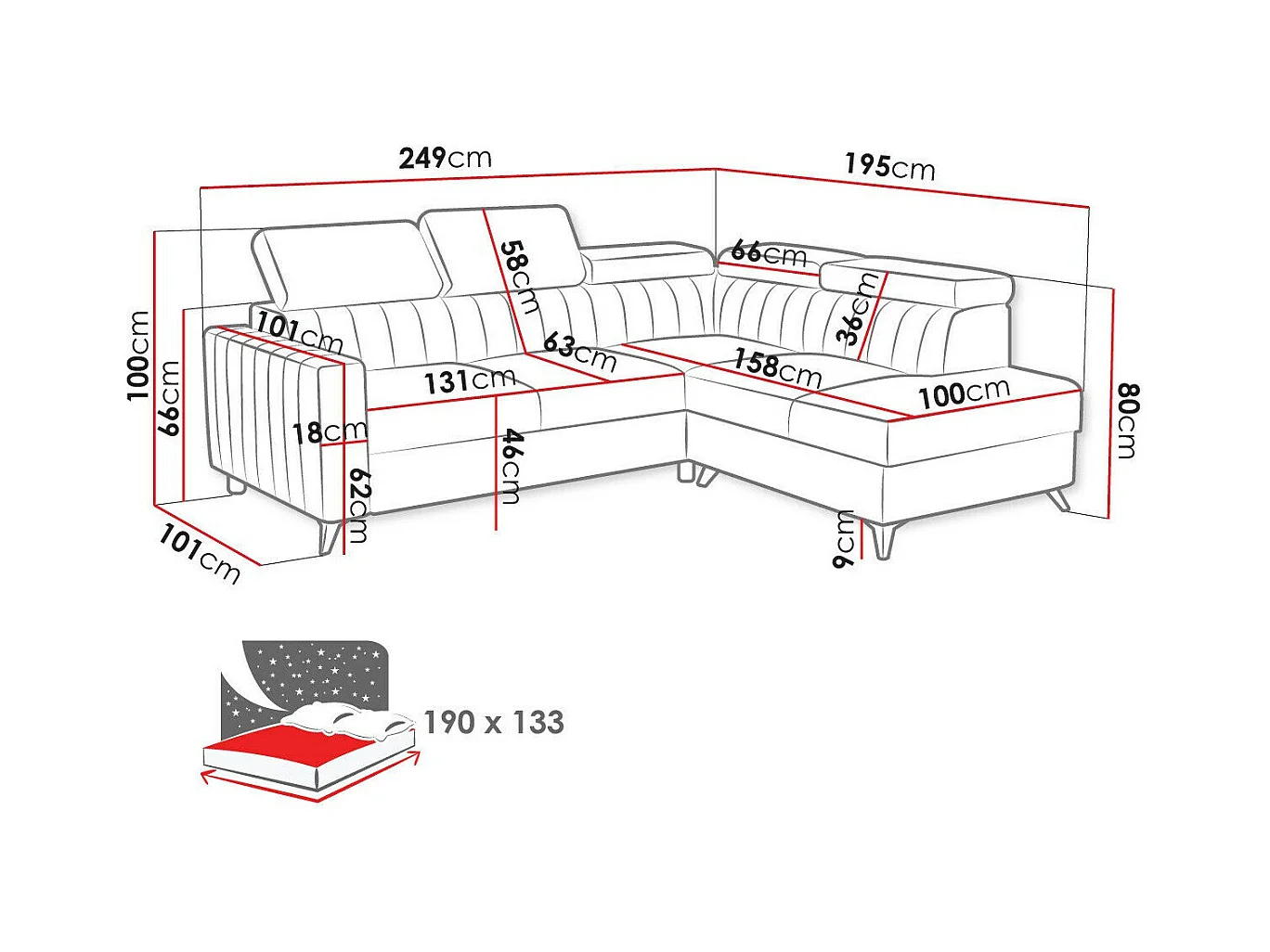 Sofá de canto Columbus 202, Castanho claro, Funcionalidade de dormir