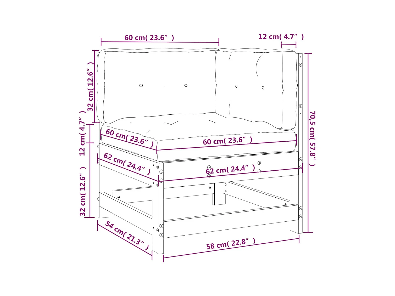 Sofá de canto com almofadões madeira de pinho impregnada PT210355