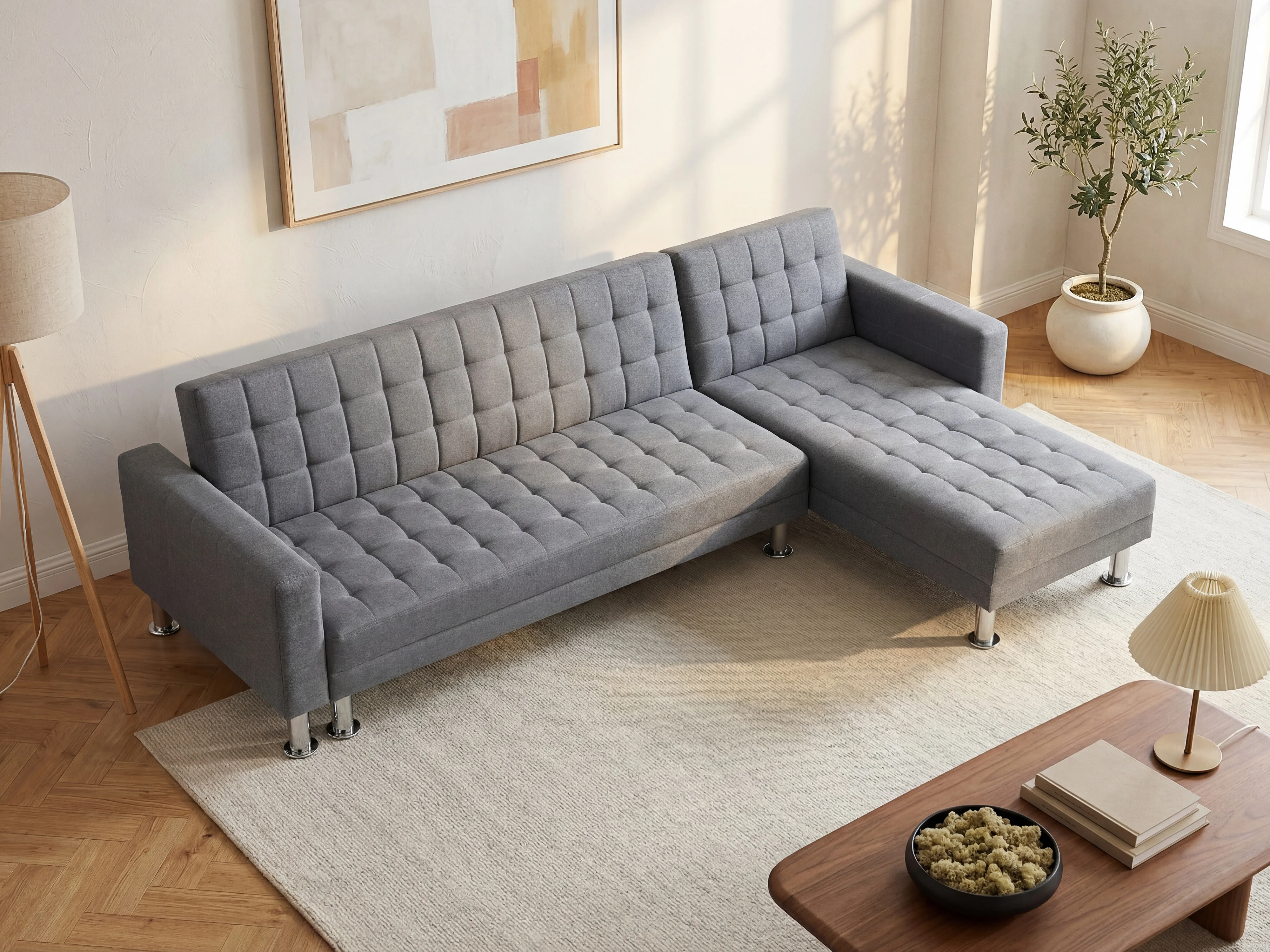 Sofá de canto convertível e reversível em tecido cinza - WILLIS II