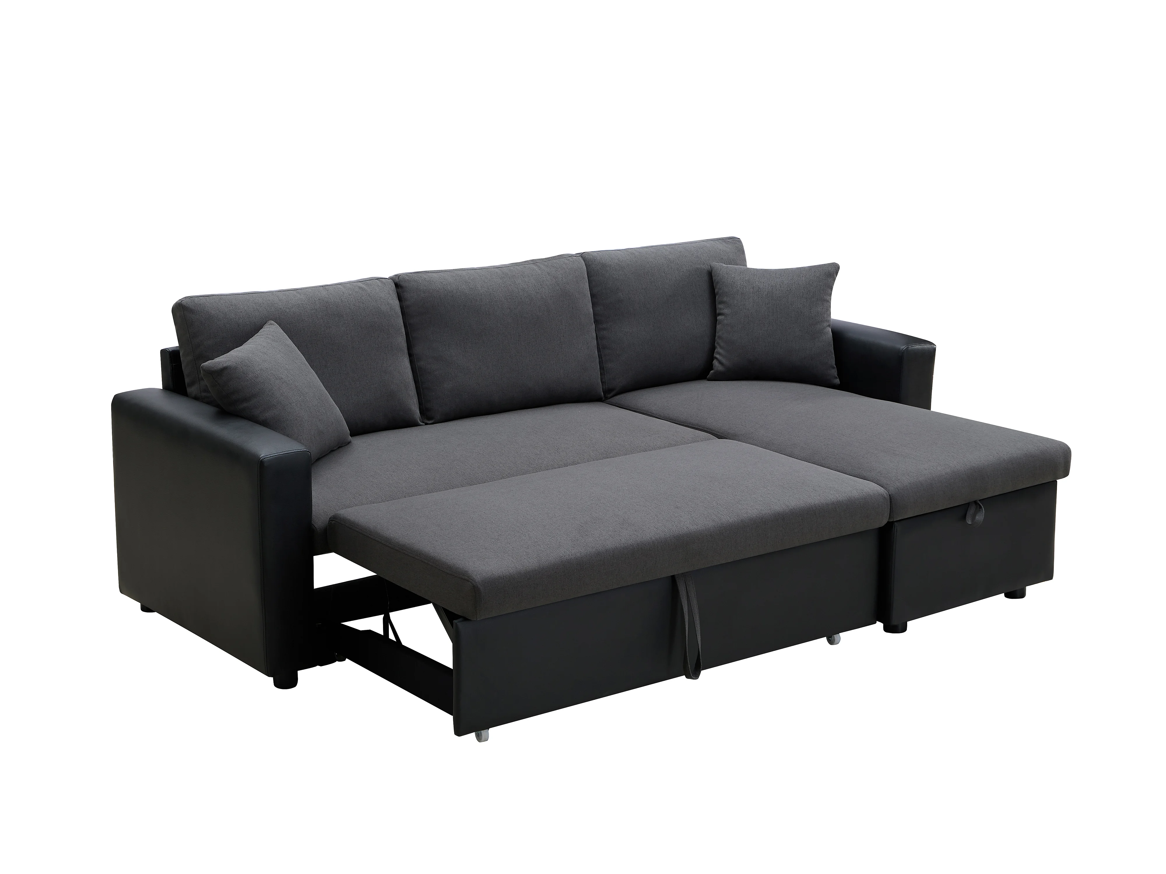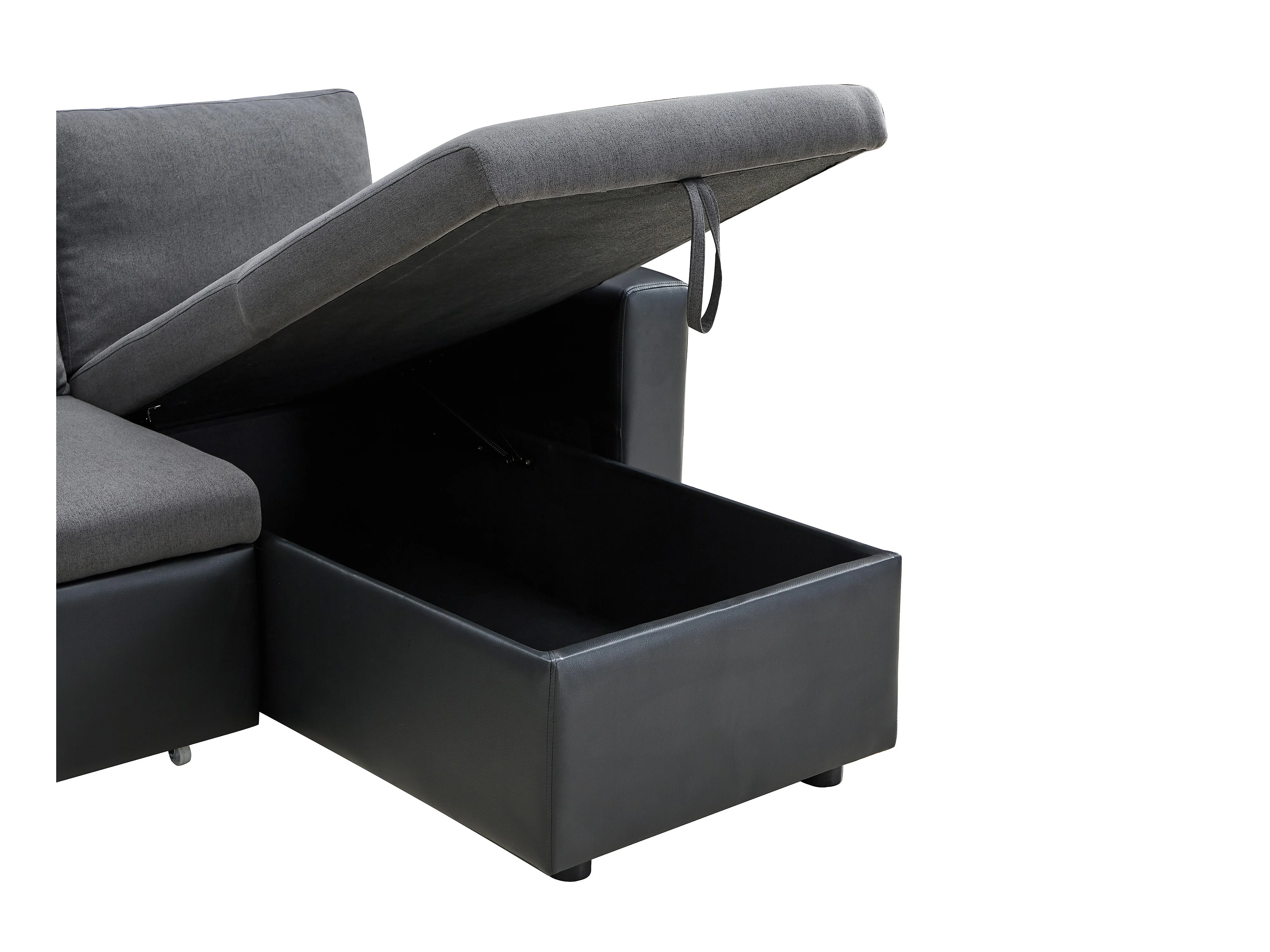 Sofá de canto convertível e reversível em tecido e pele sintética - Antracite e preto - GAZUR