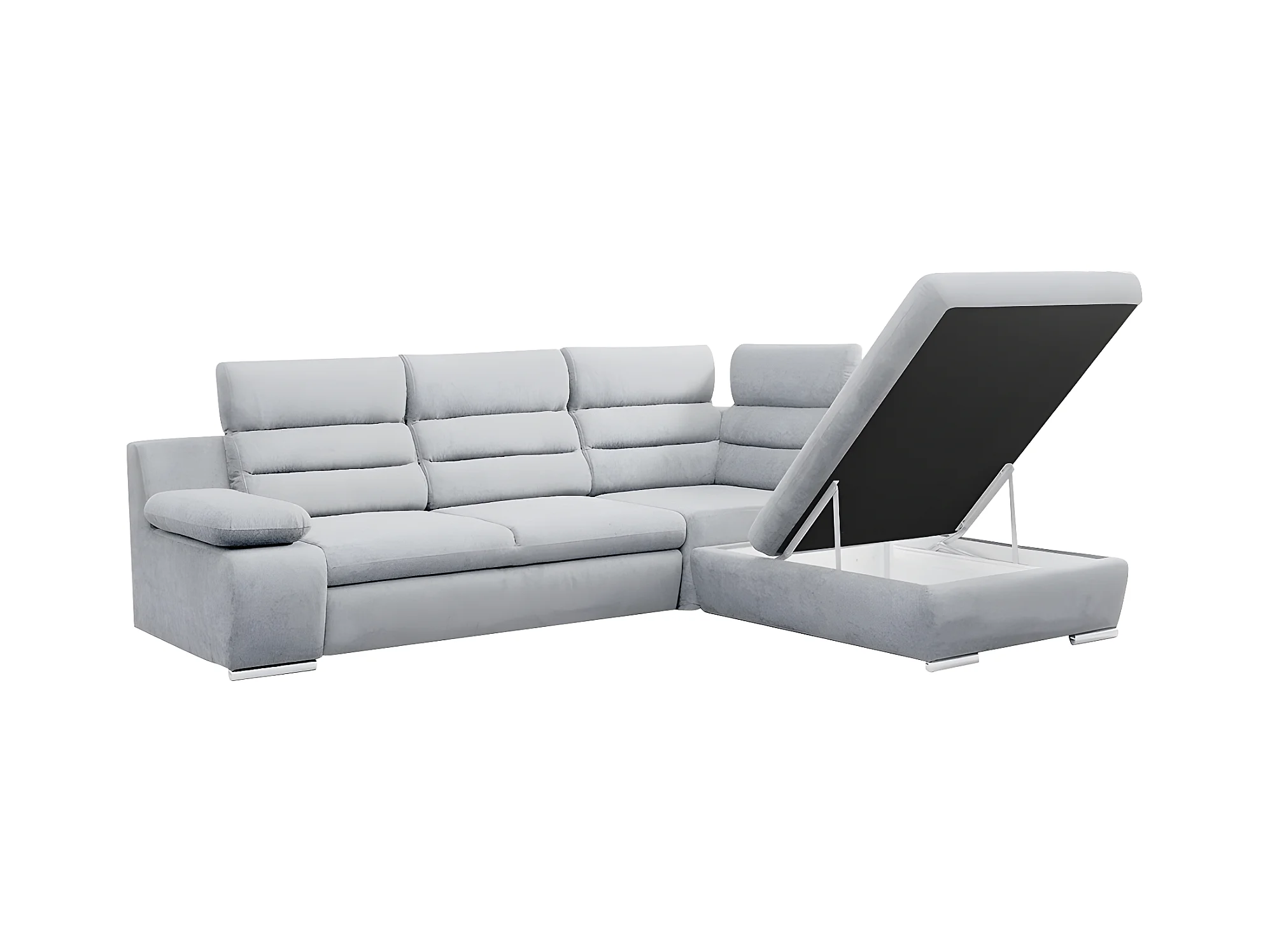 Sofá de canto convertível tecido cinza-claro, canto direito - PYLOS