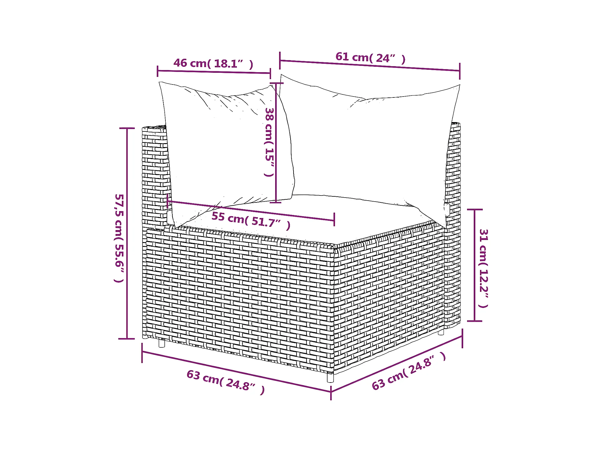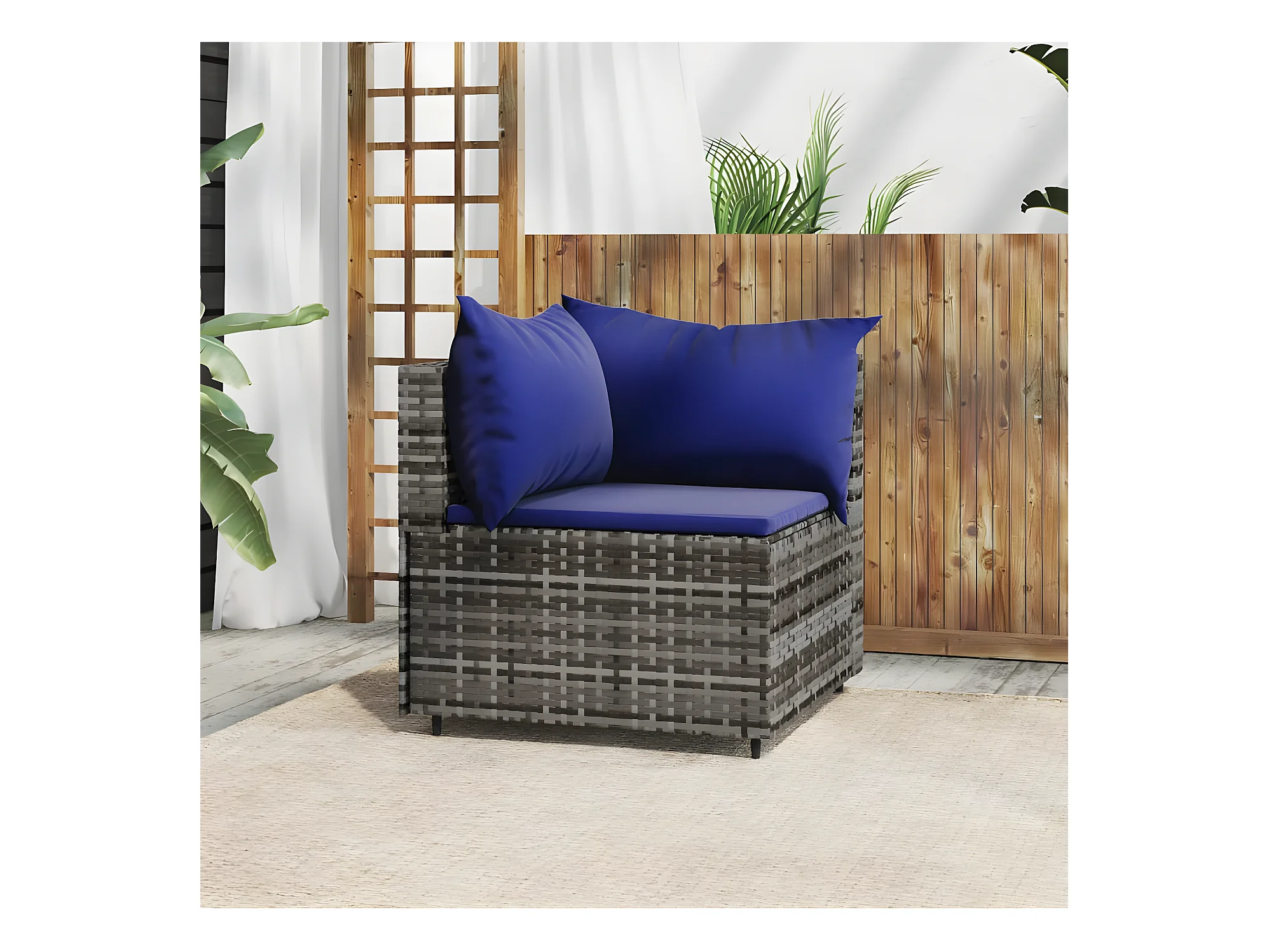 Sofá de canto de jardim com almofadas de resina tecida cinza