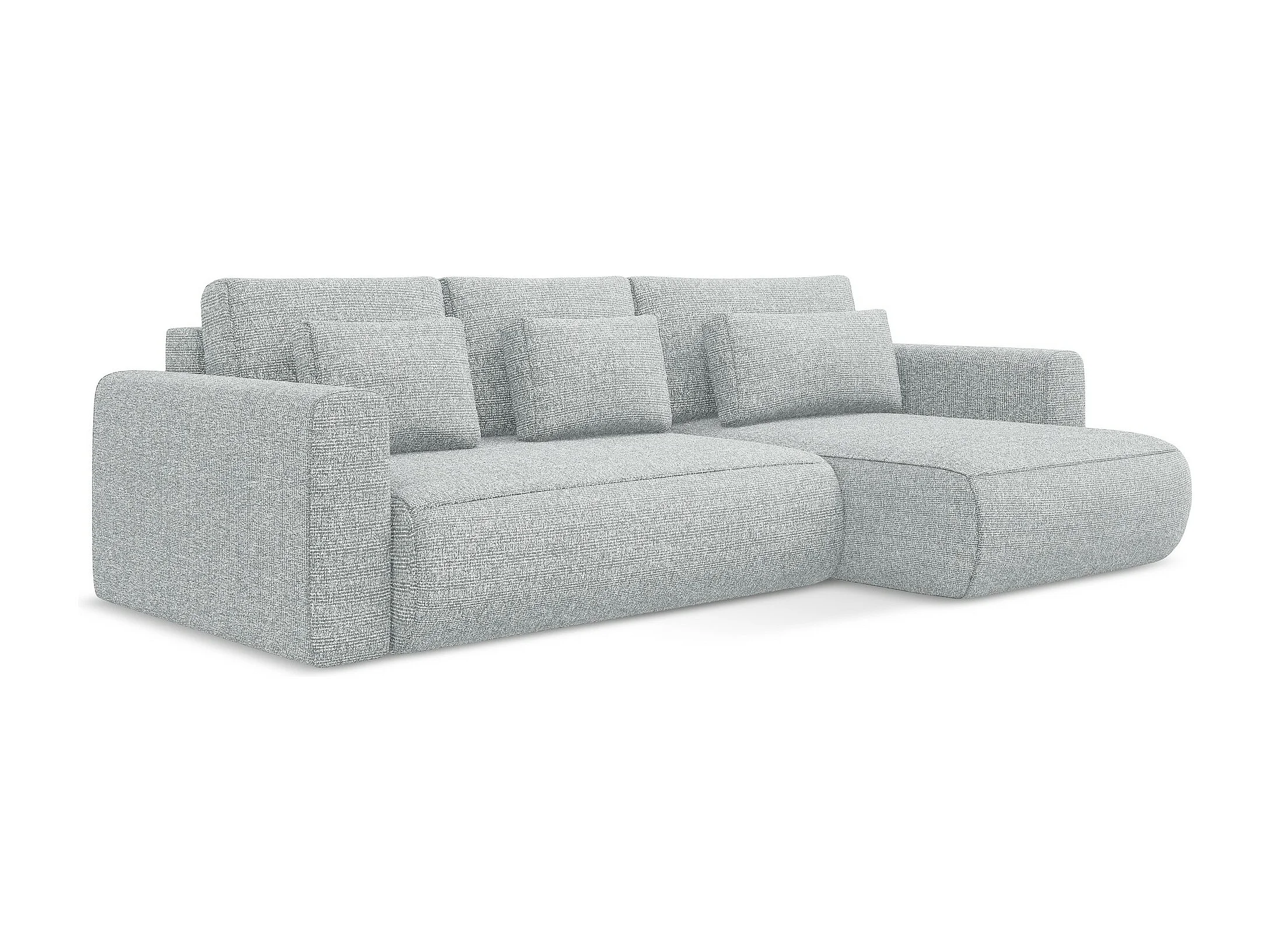 Sofá de canto direito convertível 3 lugares em tecido texturizado prata - KAPUA