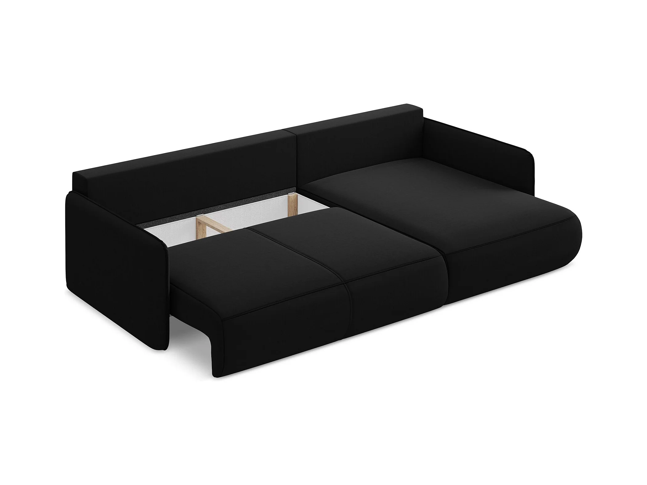 Sofá de canto direito convertível 3 lugares em veludo preto - NANEA