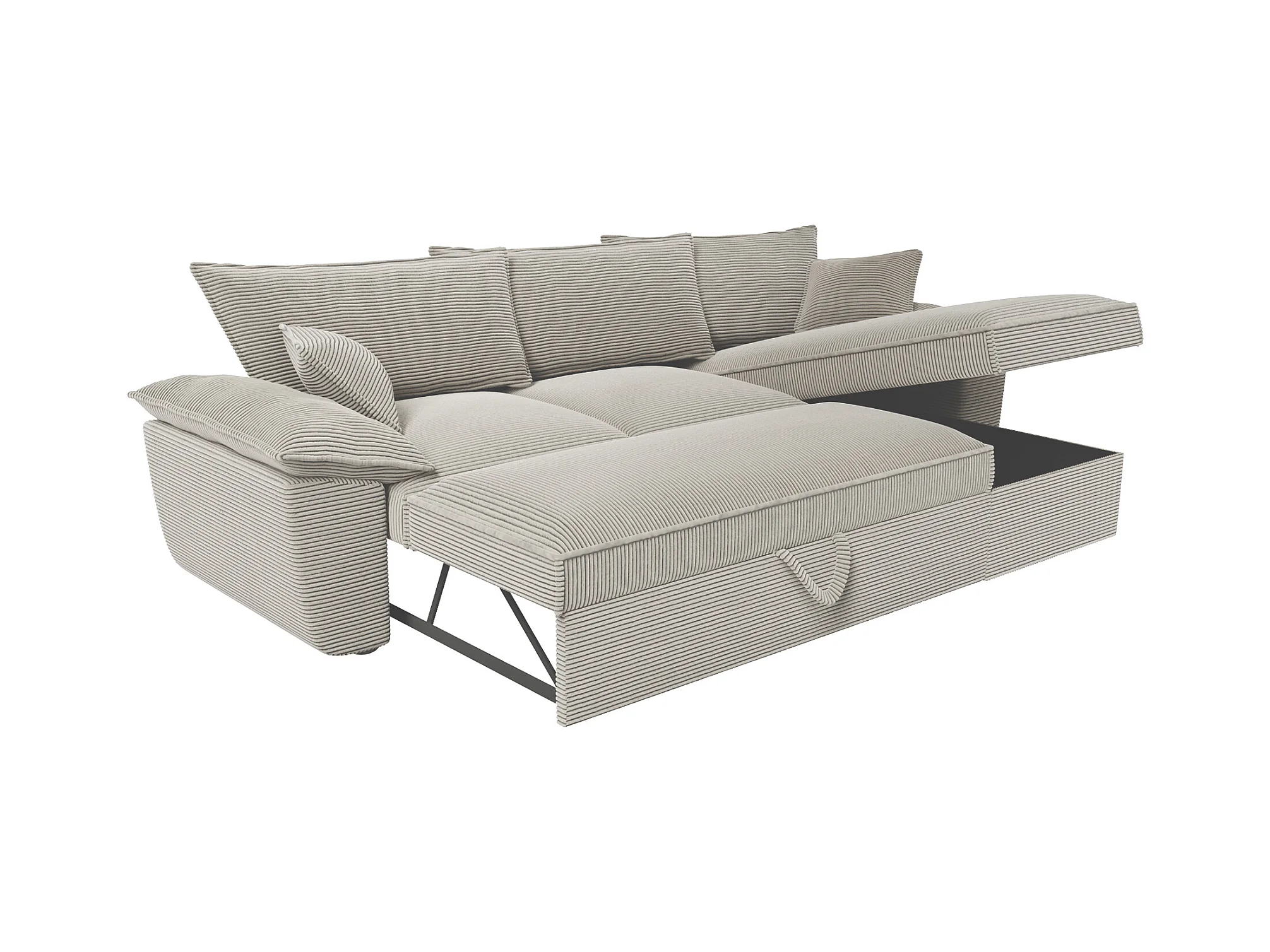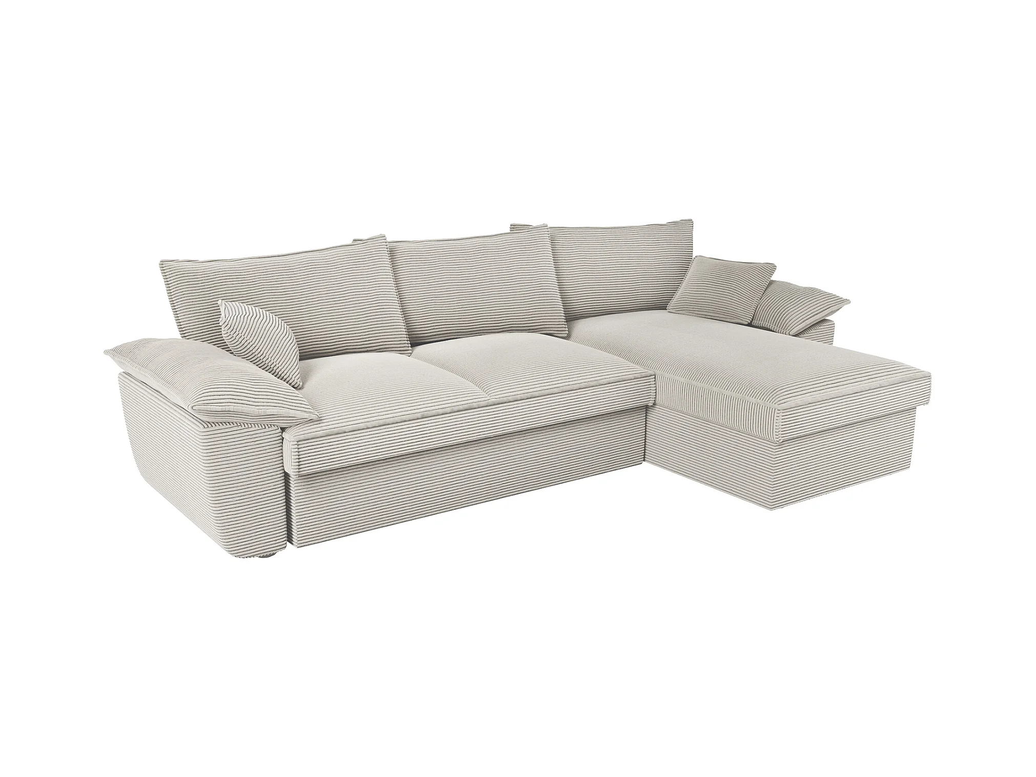 Sofá de canto direito convertível em veludo canelado cinzento-claro com espaço de arrumação - GUILLERMO II
