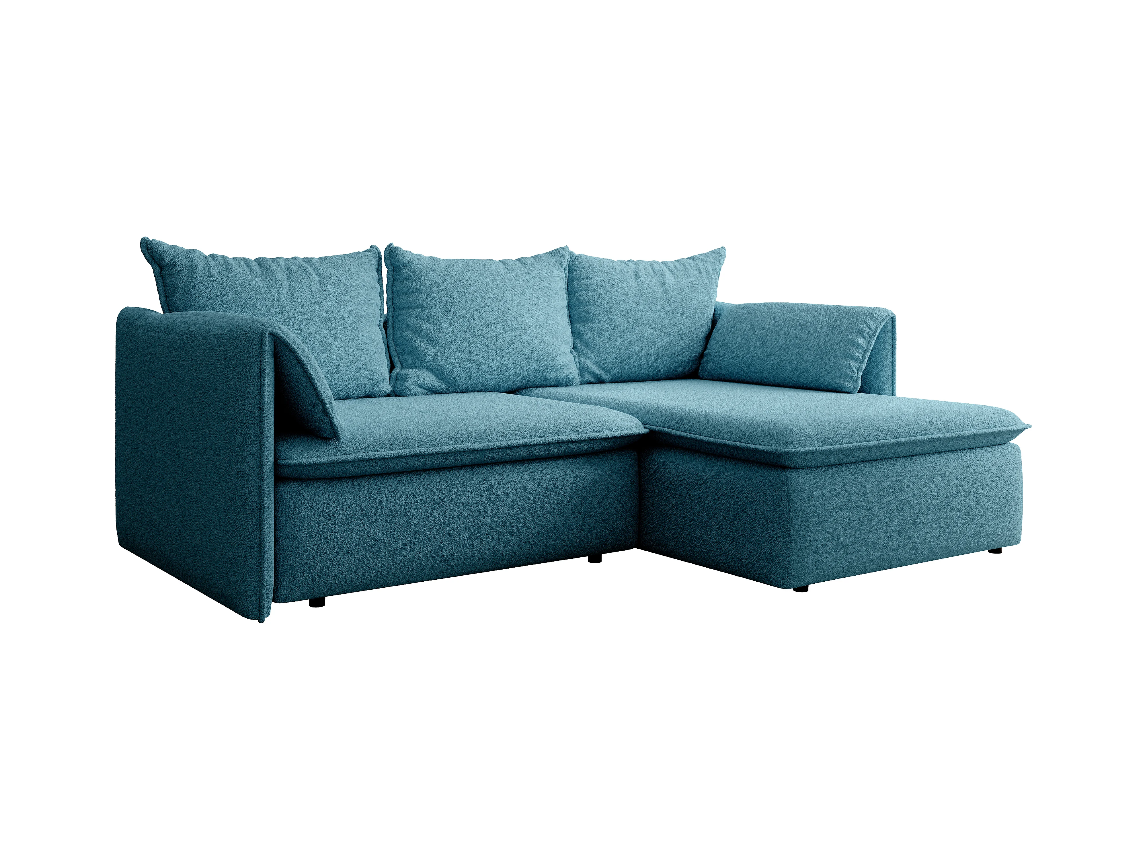 Sofá de canto direito convertível tecido texturizado azul - TEODORA