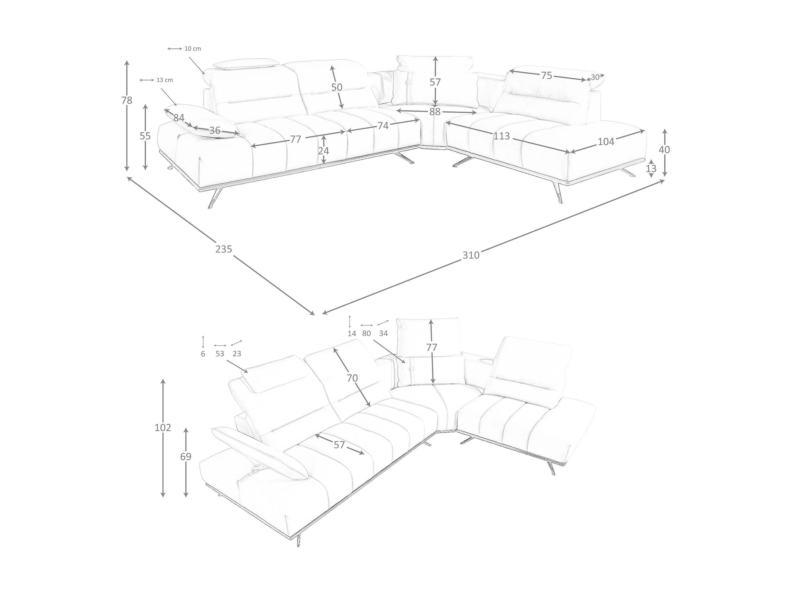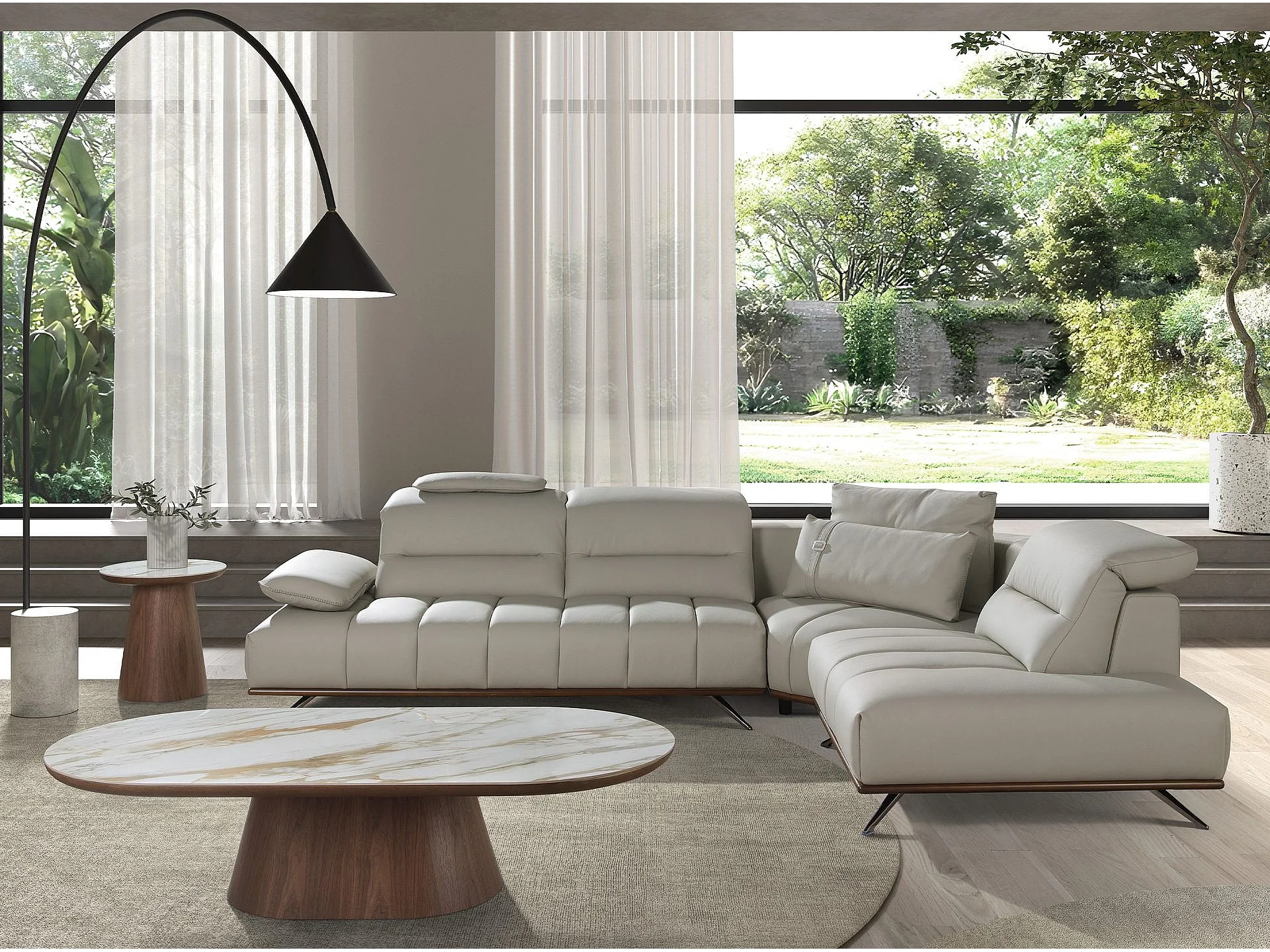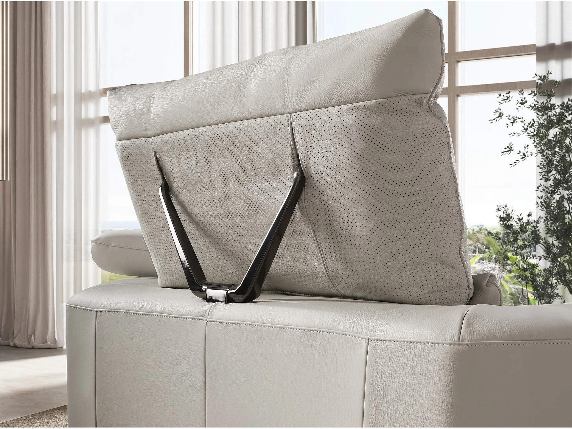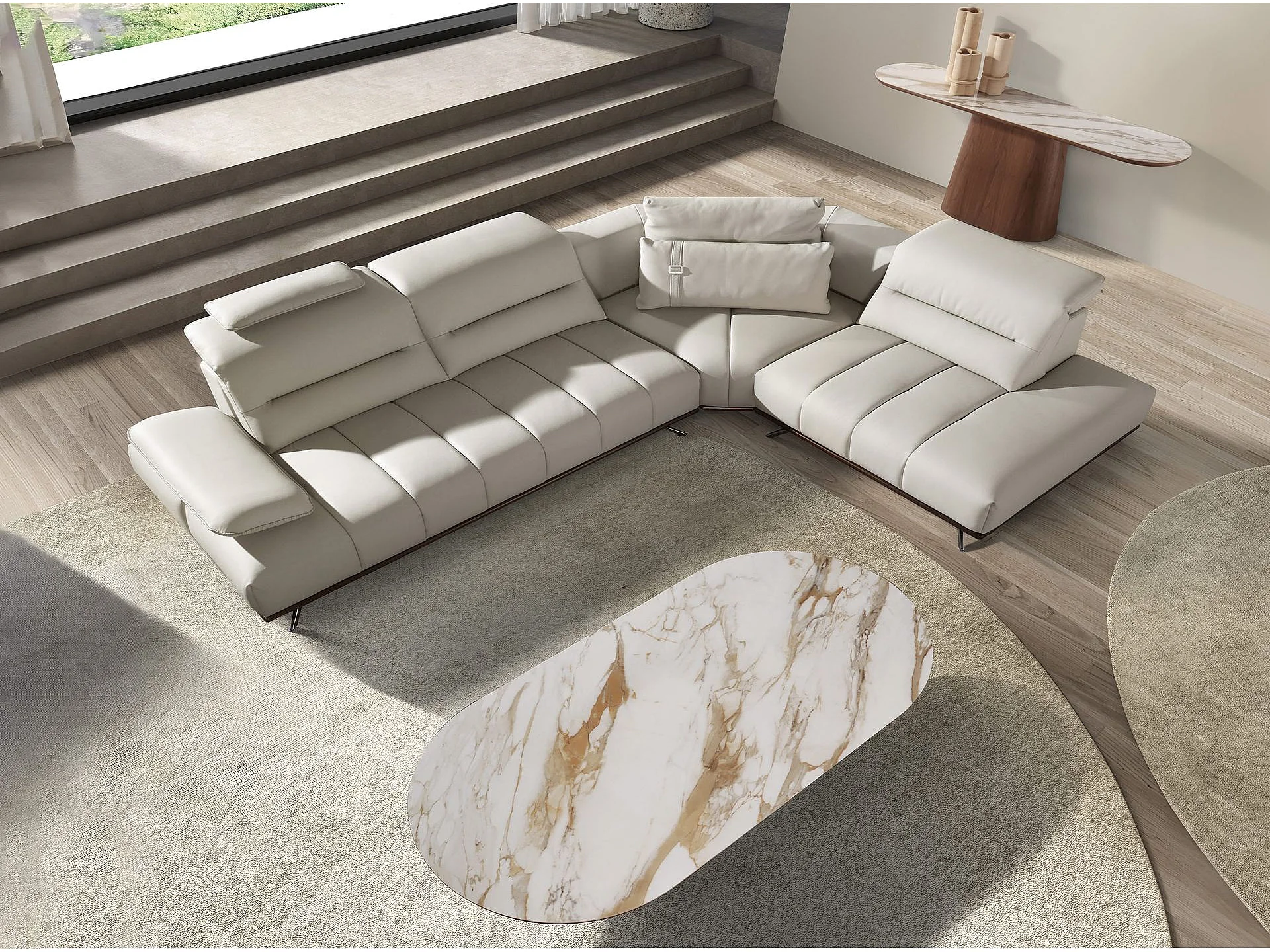 Sofá de canto direito em pele cinzenta clara 6244 ANGEL CERDA
