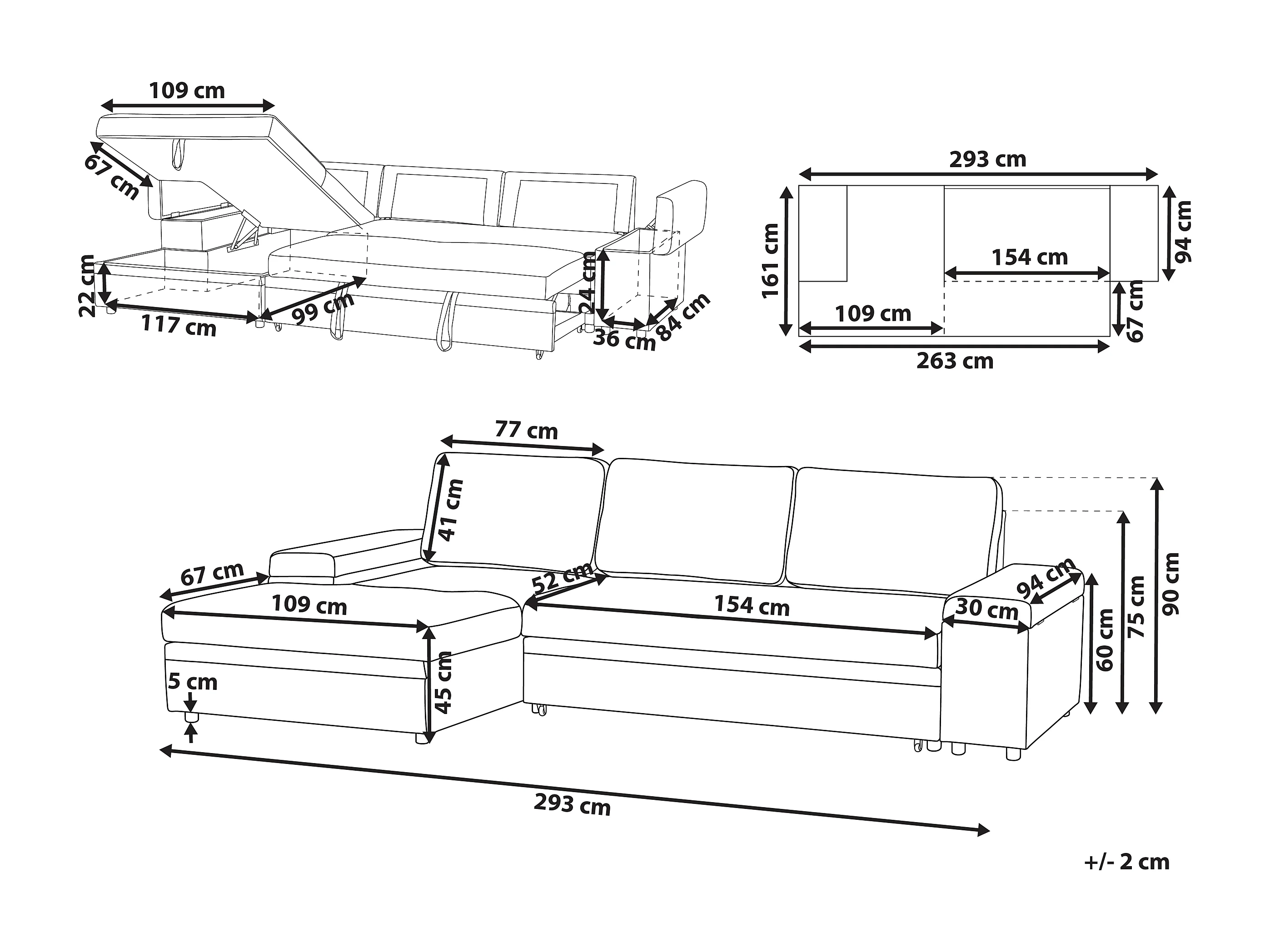 Sofá-cama de canto HRISEY Linho sintético Cinzento claro com arrumação 3 lugares à direita