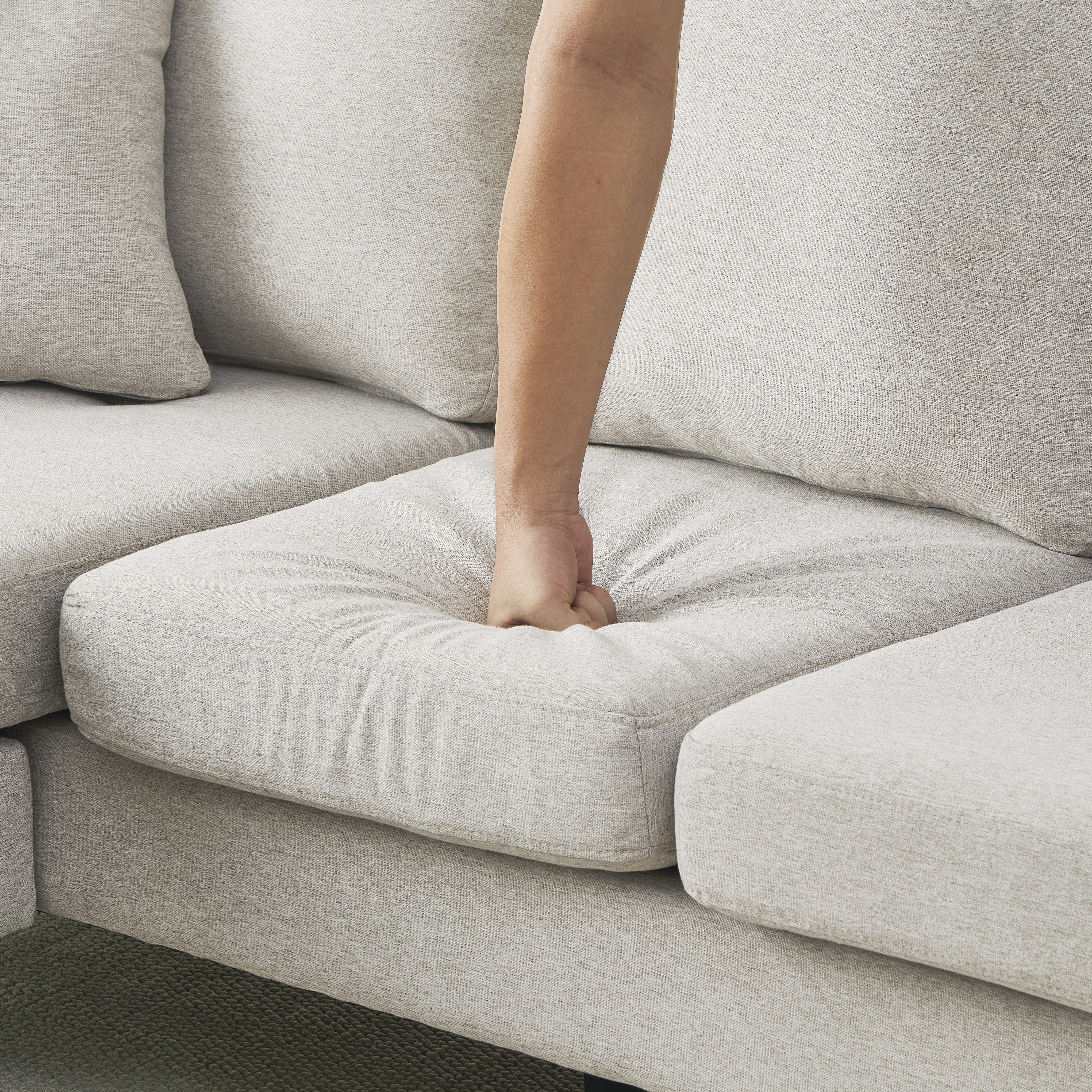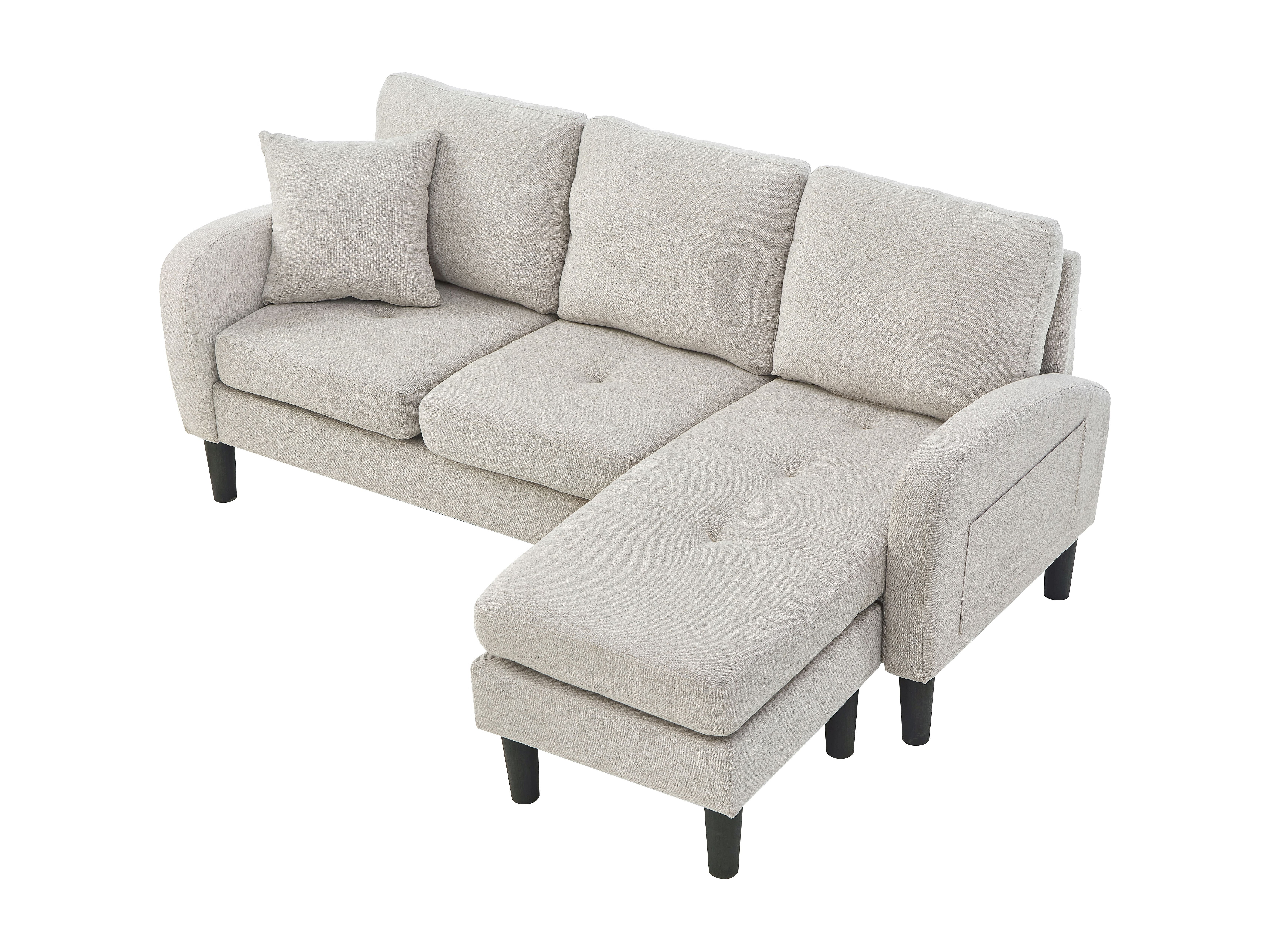 Sofá de canto em L com chaise longue – sofá de três lugares, 166 x 118 x 77 cm, tecido respirável de mistura de algodão e linho