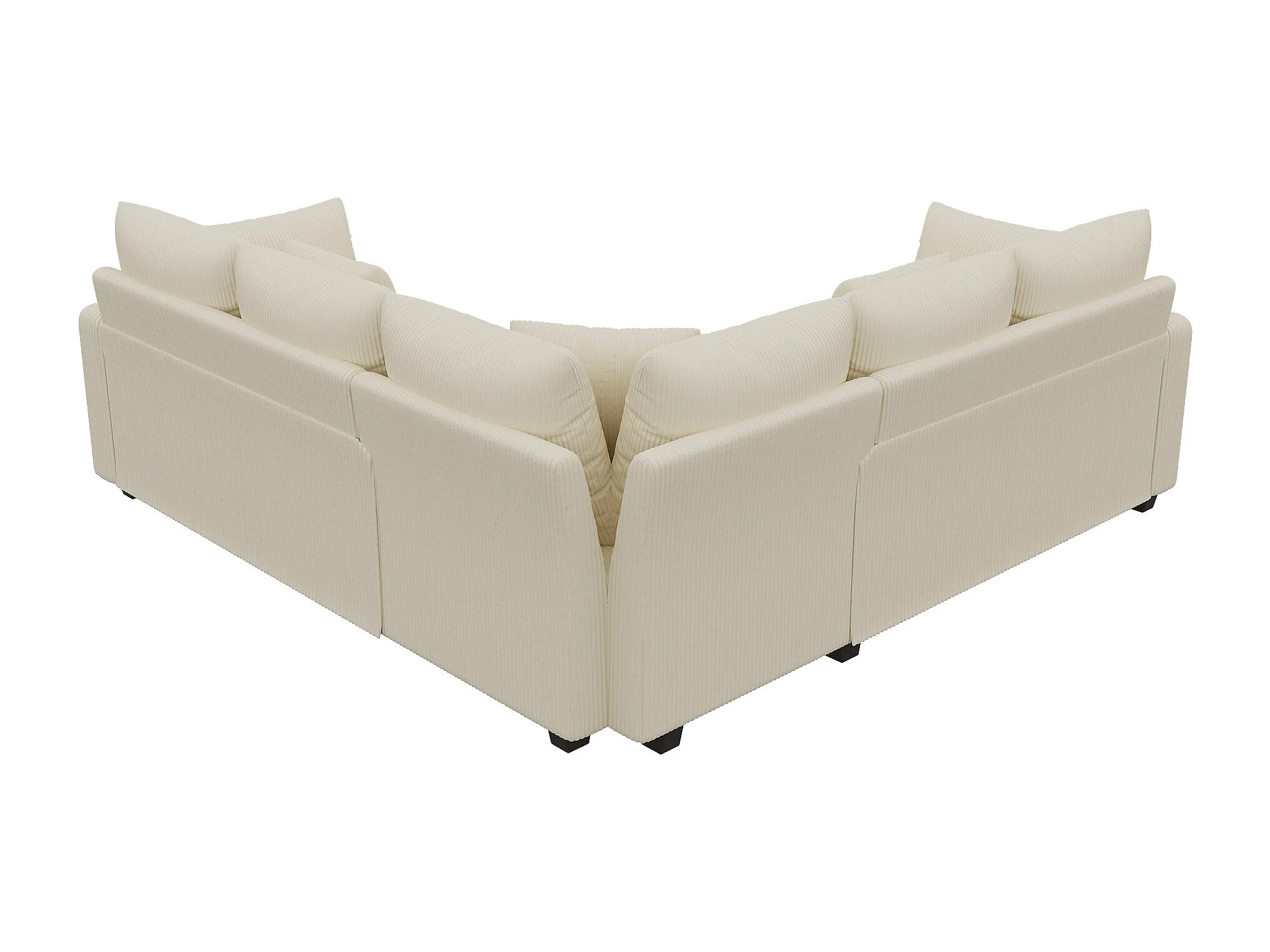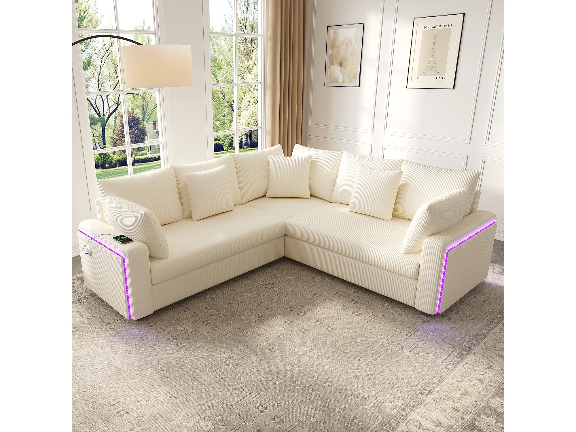 Sofá de canto em L de 5 lugares - 198 x 198 x 83 cm - com LEDs + porta USB + almofadas combinando - veludo - bege