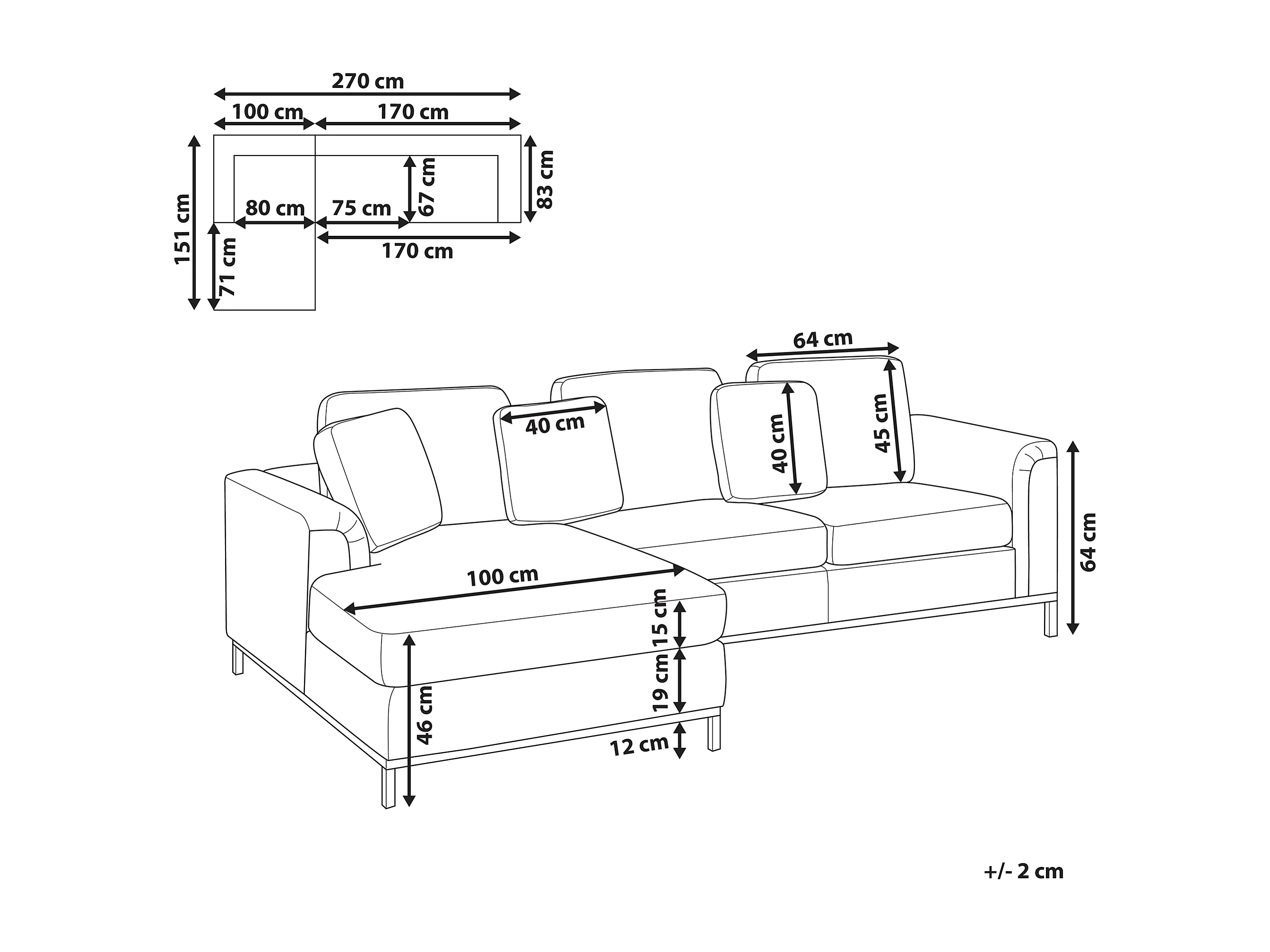 Sofá de canto OSLO Tecido Creme claro 4 lugares à direita