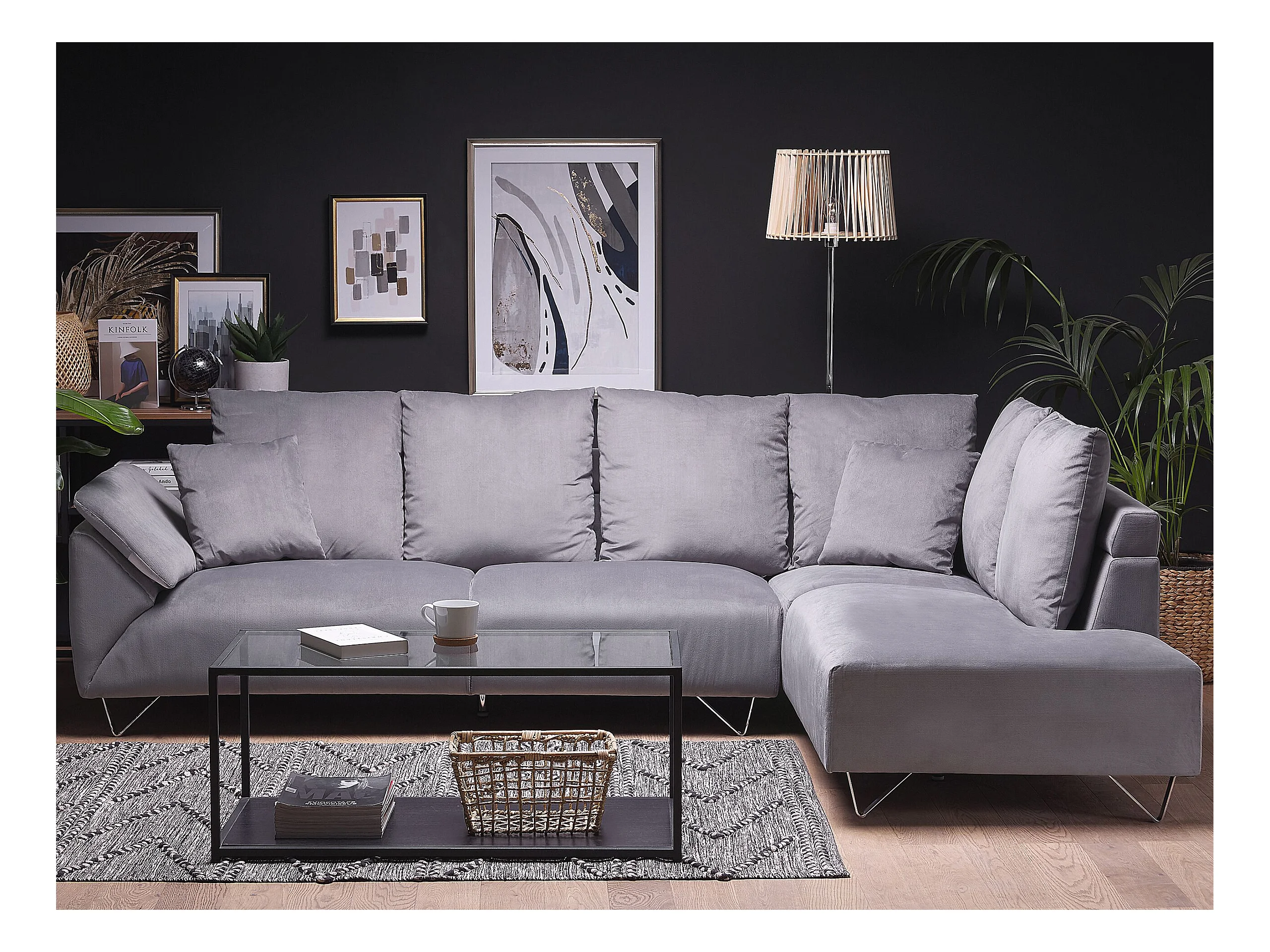 Sofá de canto OSLO Veludo Cinzento 4 lugares à esquerda