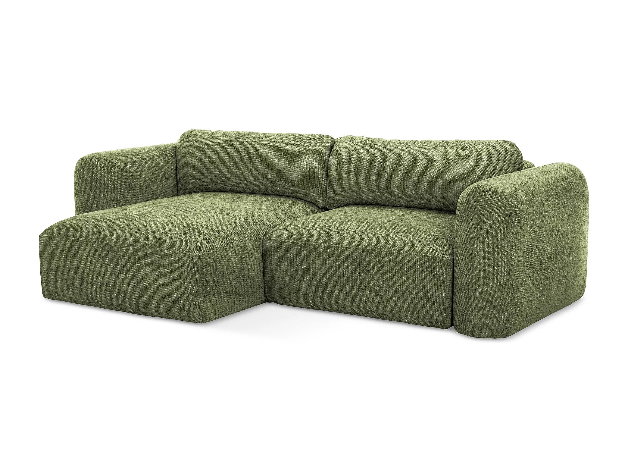 Sofá de canto esquerdo convertível 3 lugares em tecido chenille verde - MELE