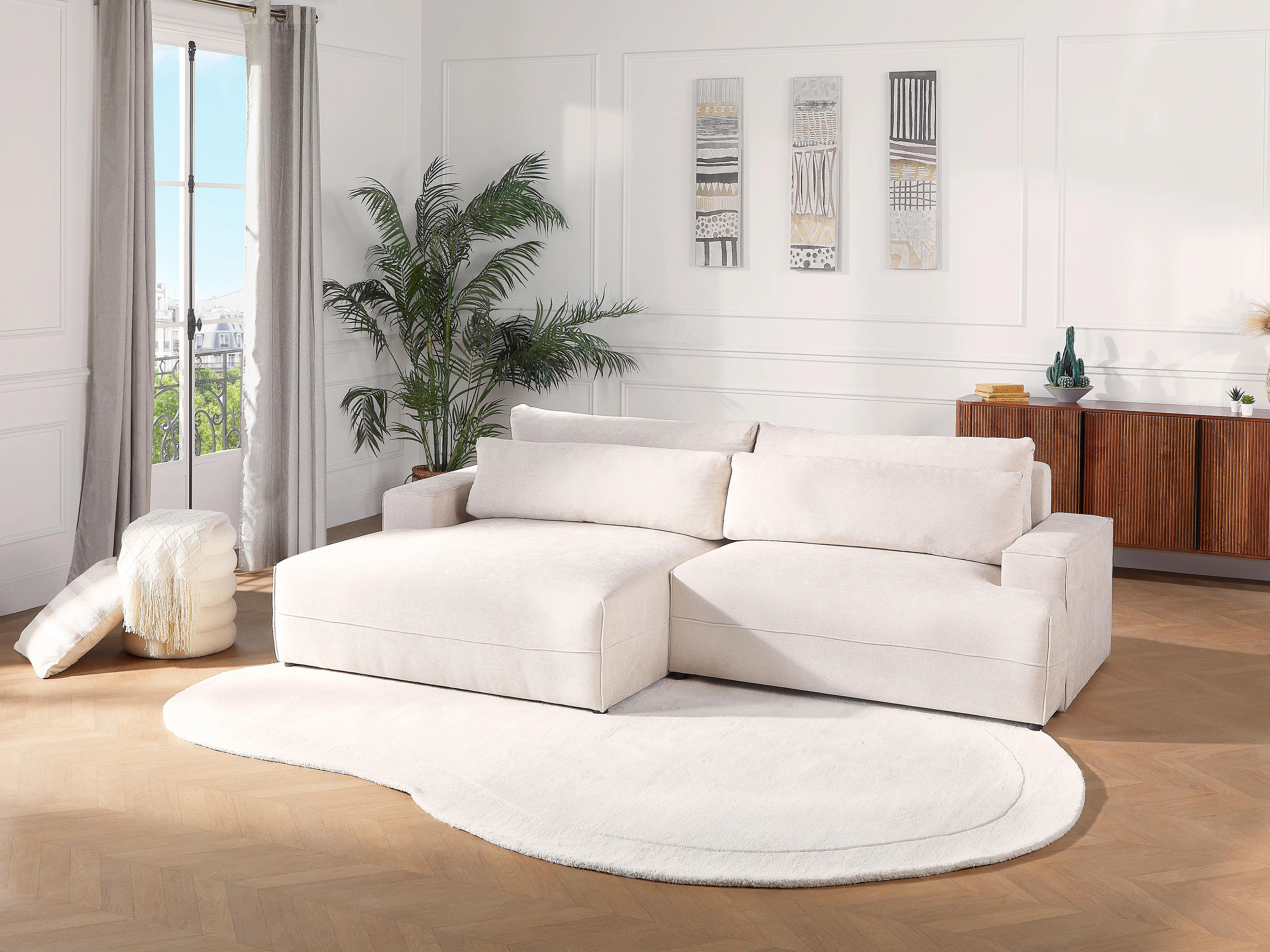Sofá de canto esquerdo convertível em tecido texturizado bege - BREGLIO