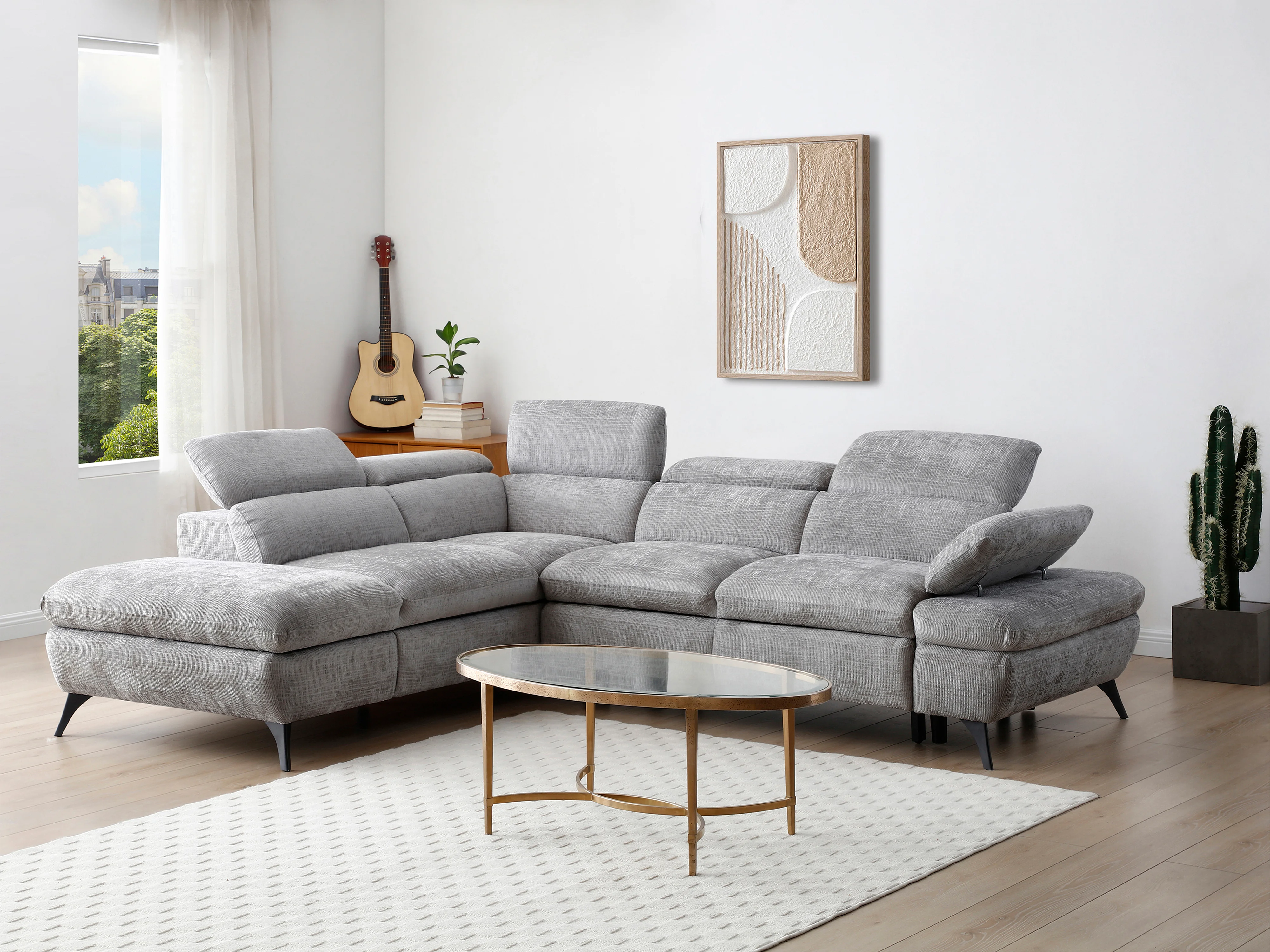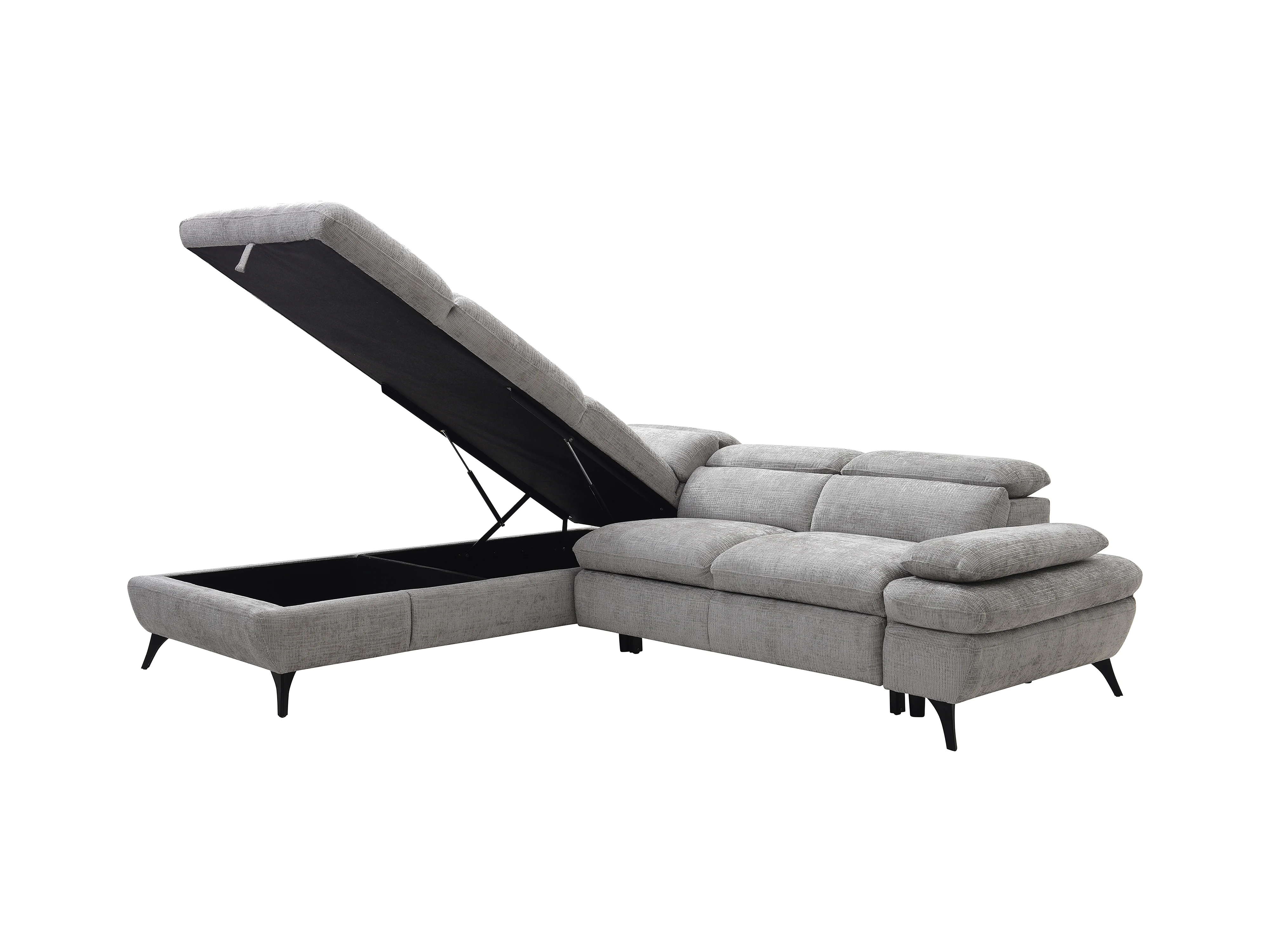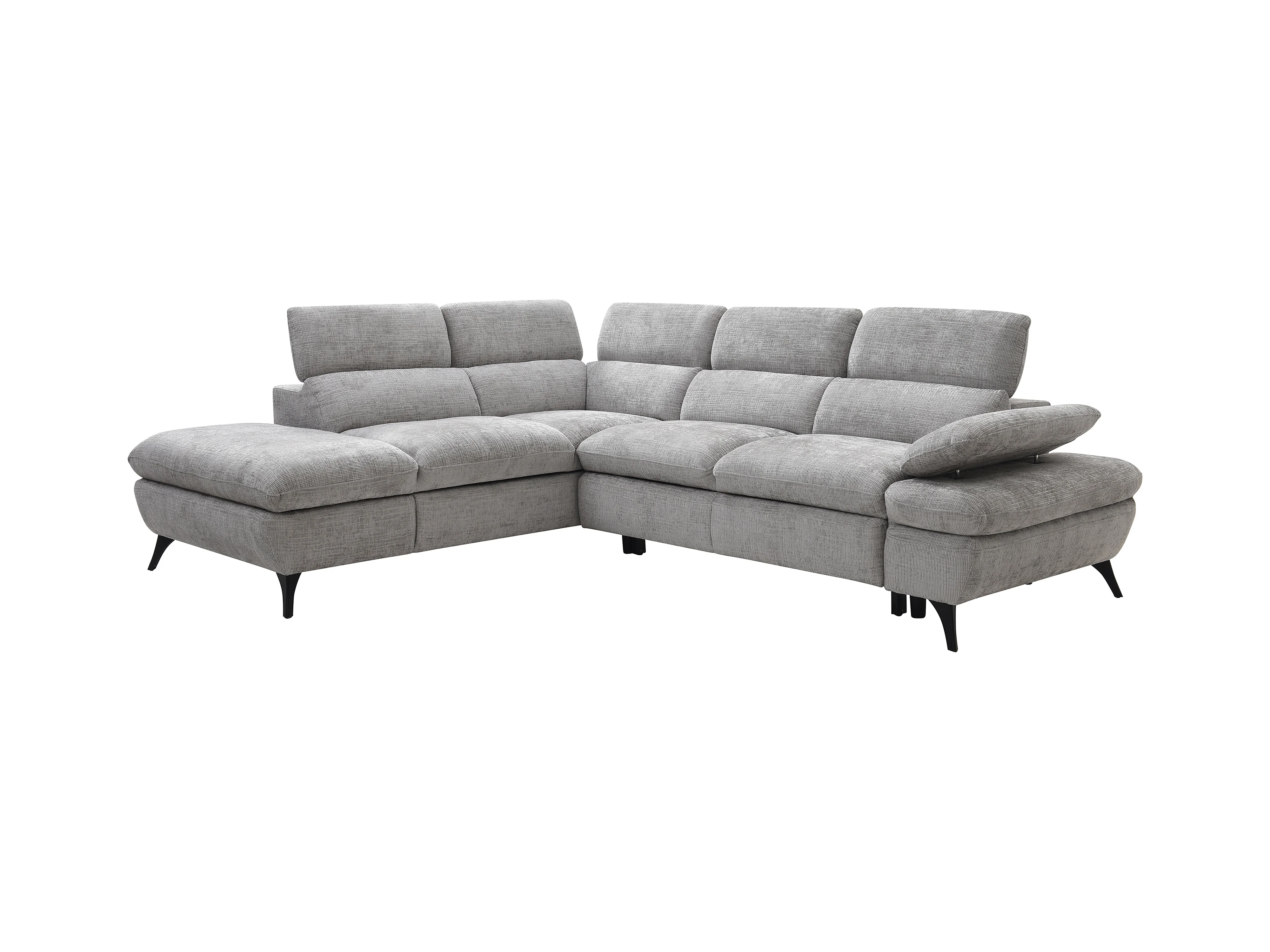 Sofá de canto esquerdo convertível em tecido texturizado cinza - SURDELI