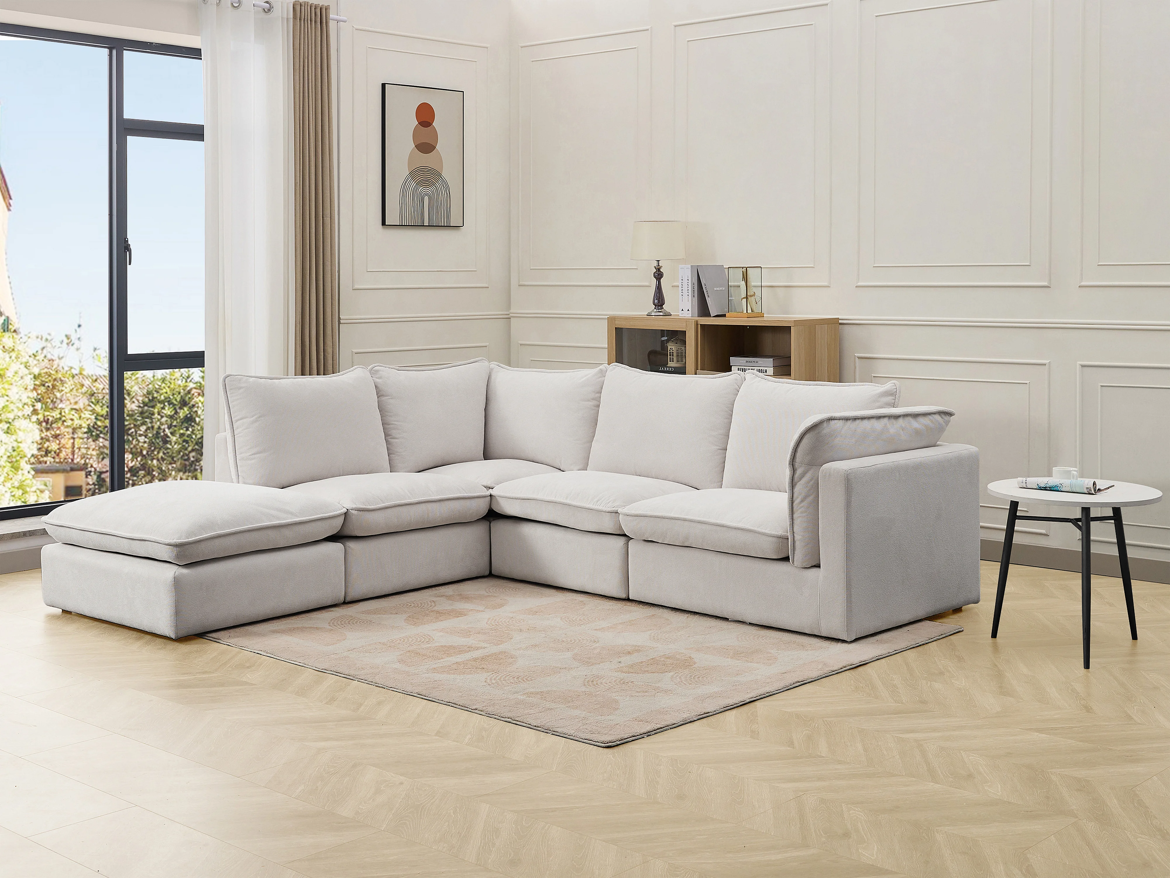 Sofá de canto esquerdo em tecido texturizado bege - BRUMADO