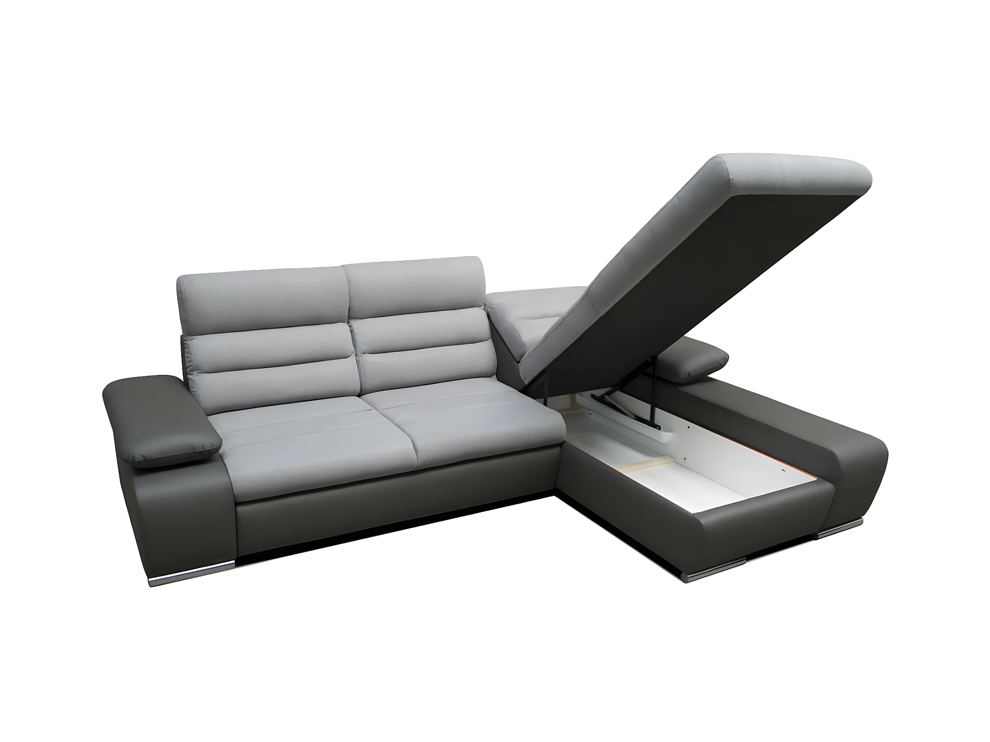 Sofá de canto modular em tecido e pele sintética Bicolor cinzento claro e cinzento escuro - Canto direito - MIRABEAU