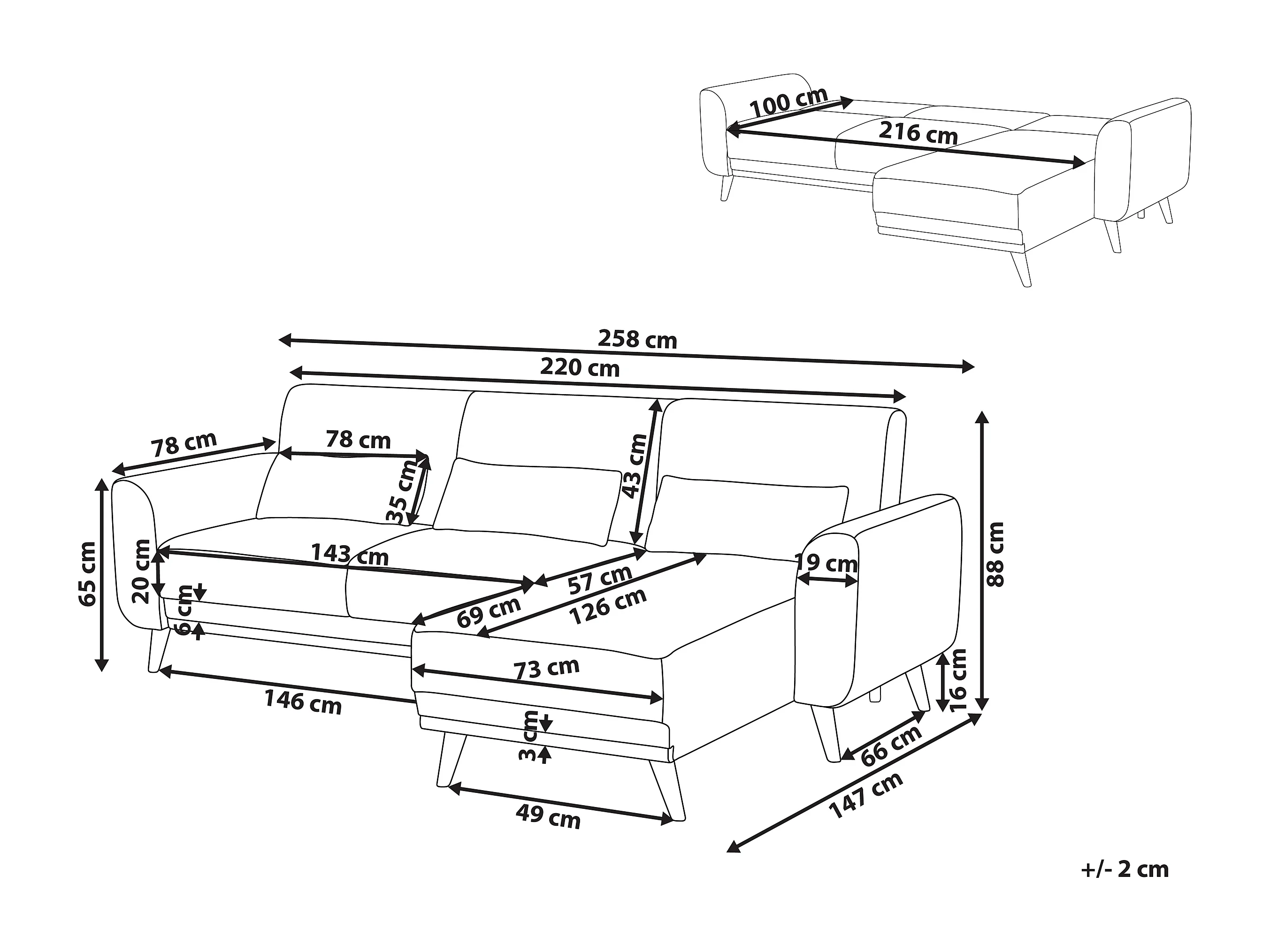 Sofá-cama de canto OLLSTA Tecido Preto 3 lugares à esquerda