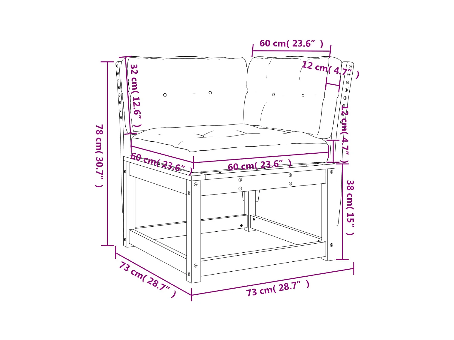 Sofá de canto p/ jardim c/ almofadões 73x73x78 cm pinho maciço