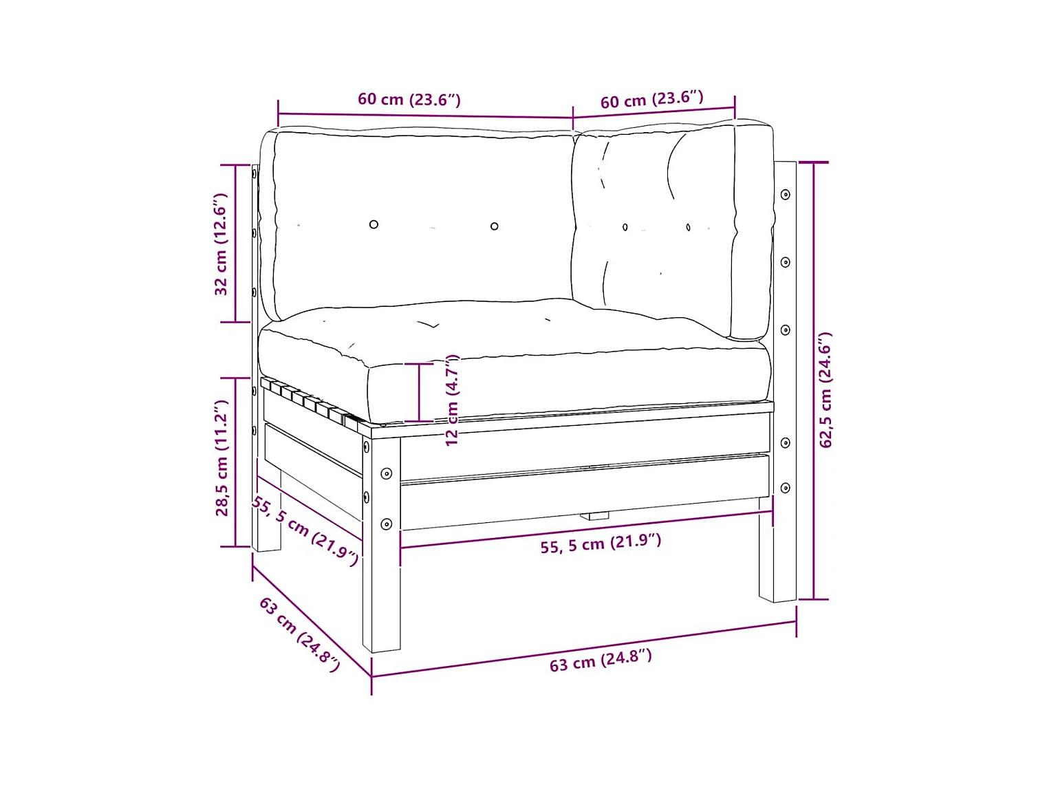 Sofá de canto p/ jardim c/ almofadões pinho maciço cor creme