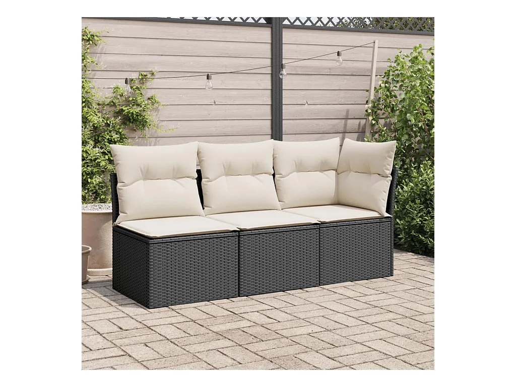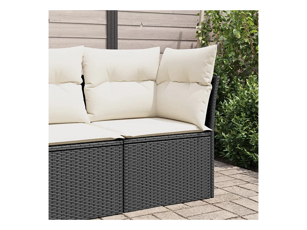 Sofá de jardim sem braços com almofadões vime PE preto PT497687