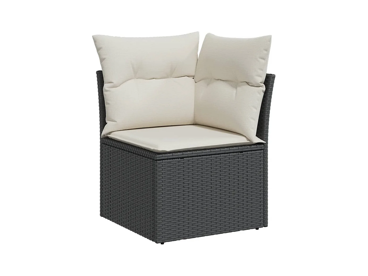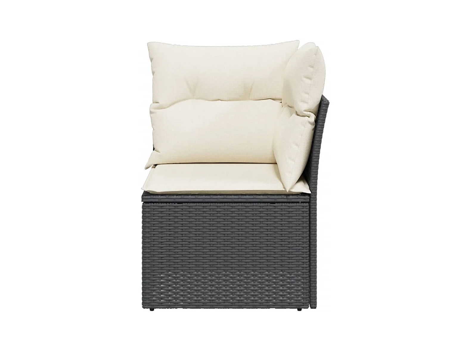 Sofá de canto p/ jardim c/ almofadões vime PE preto PT971927