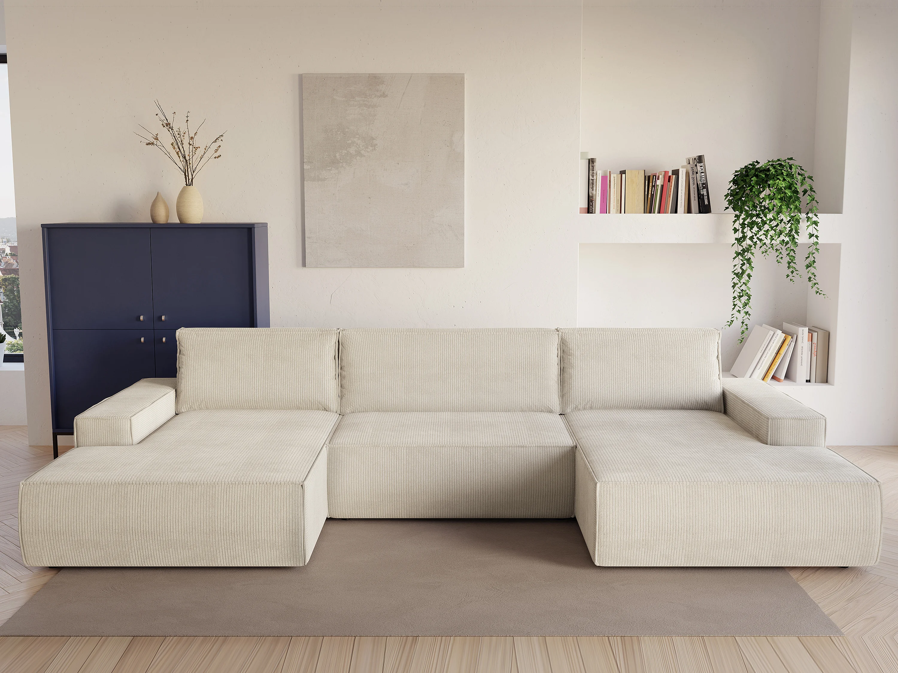 Grande sofá de canto panorâmico convertível em veludo canelado castanho - AMELIA