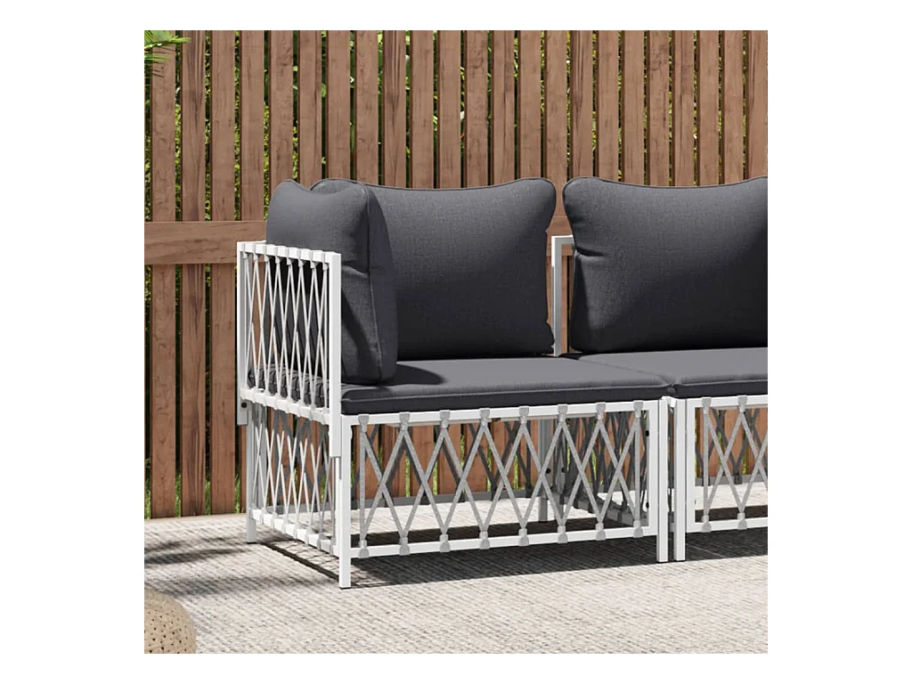 Cadeirão de jardim de 2 cantos em resina entrelaçada com almofadas brancas - BUSAN de MYLIA