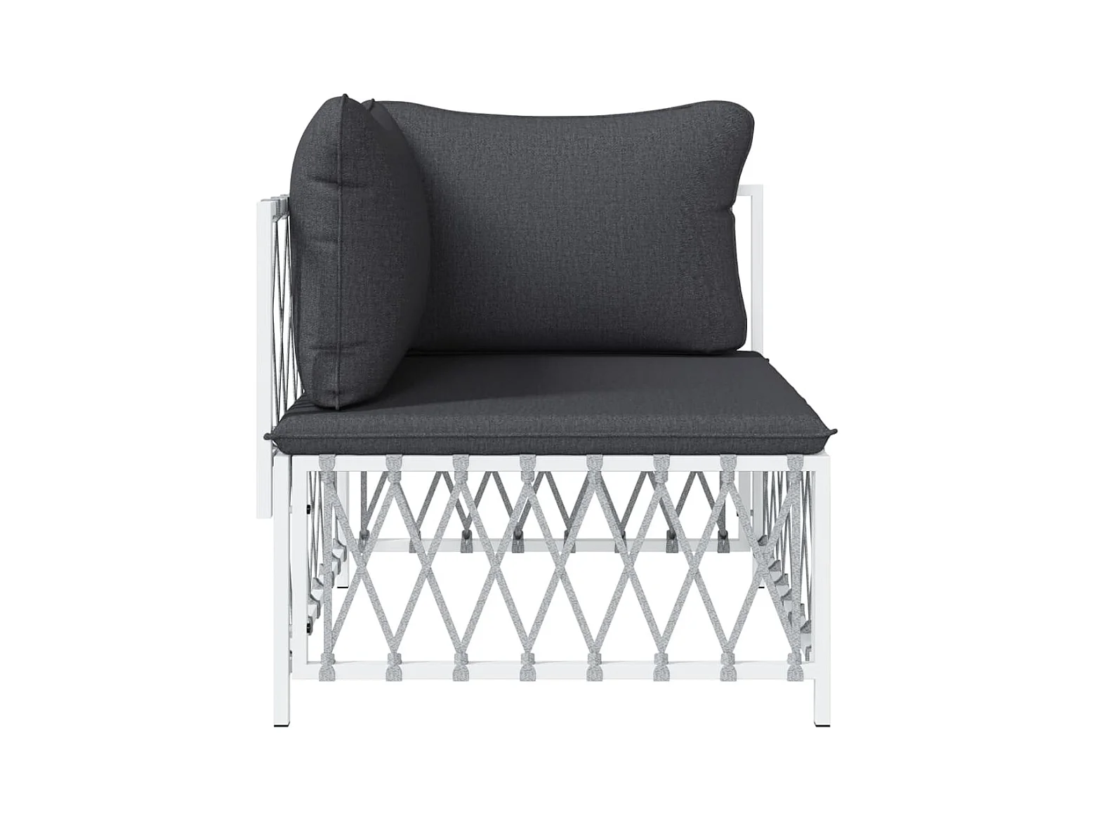 Sofá de canto para jardim com almofadões tecido branco PT506947