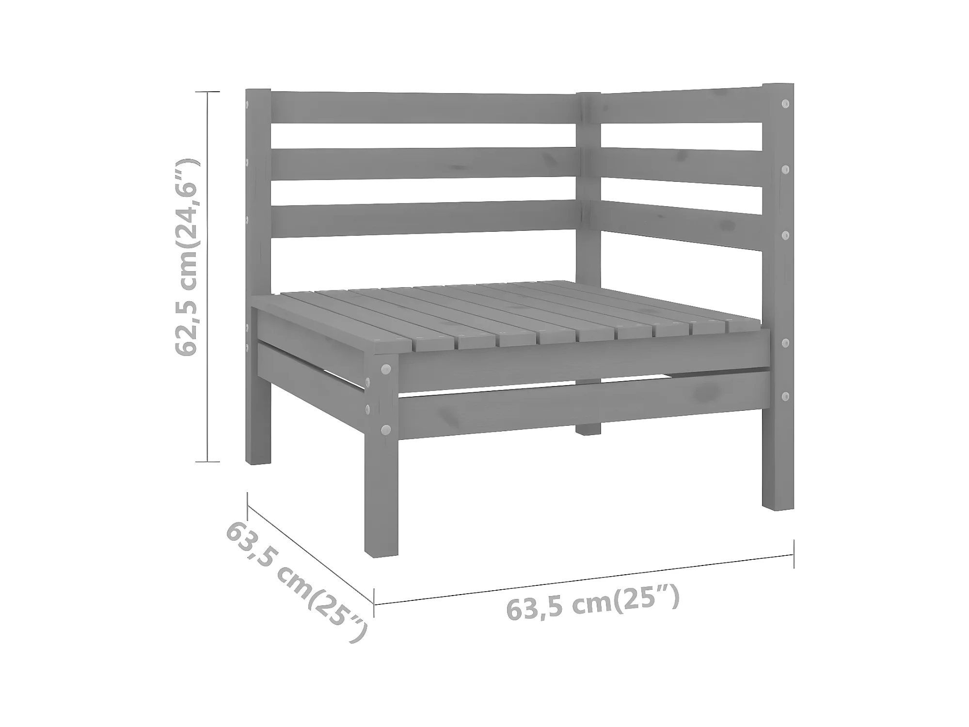 Sofá de canto para jardim madeira de pinho maciça cinzento