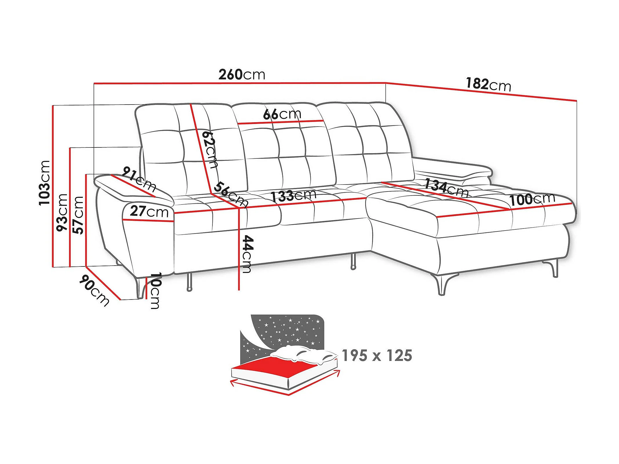 Sofá de canto Sanford 101, Cinzento, Funcionalidade de dormir