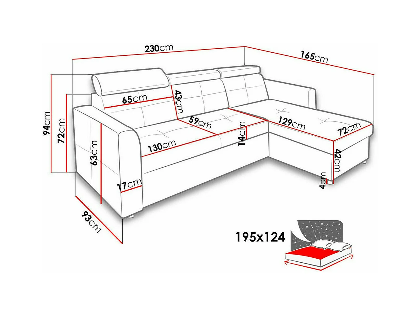 Sofá de canto Temple 124, Funcionalidade de dormir, Cama com arrumação