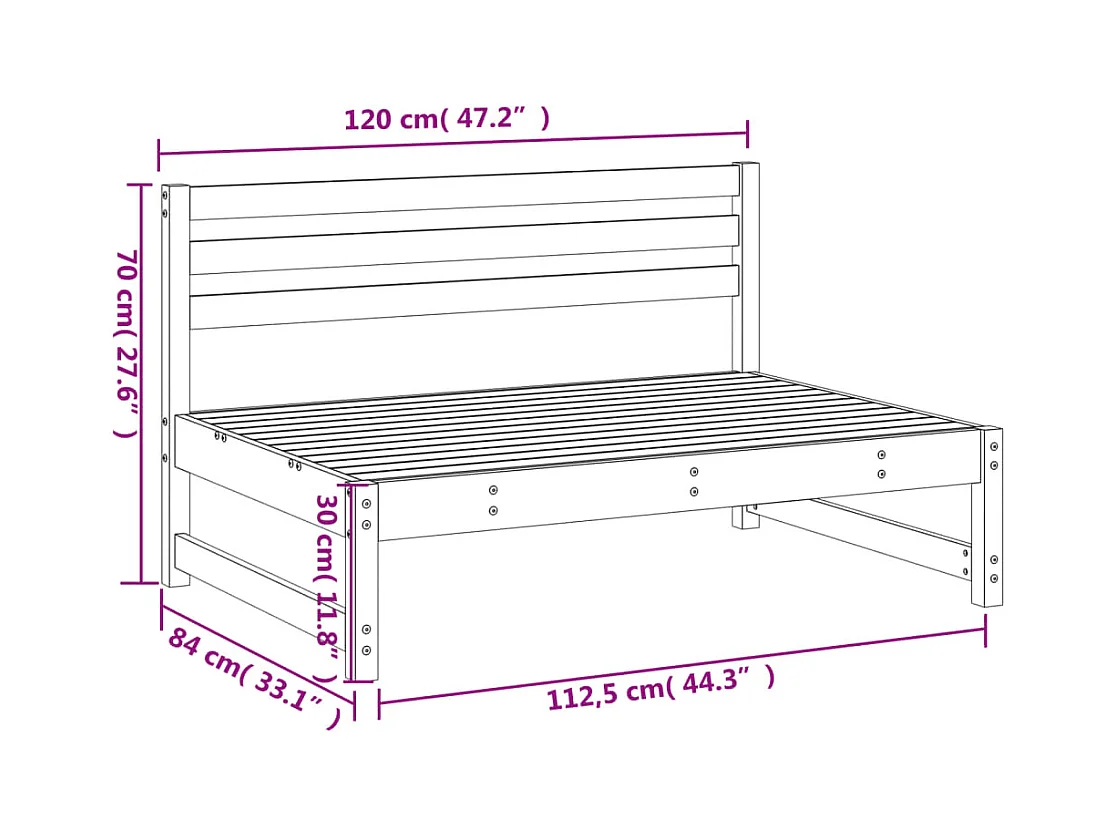 Sofá central de jardim branco 120x80 cm em madeira maciça de pinho