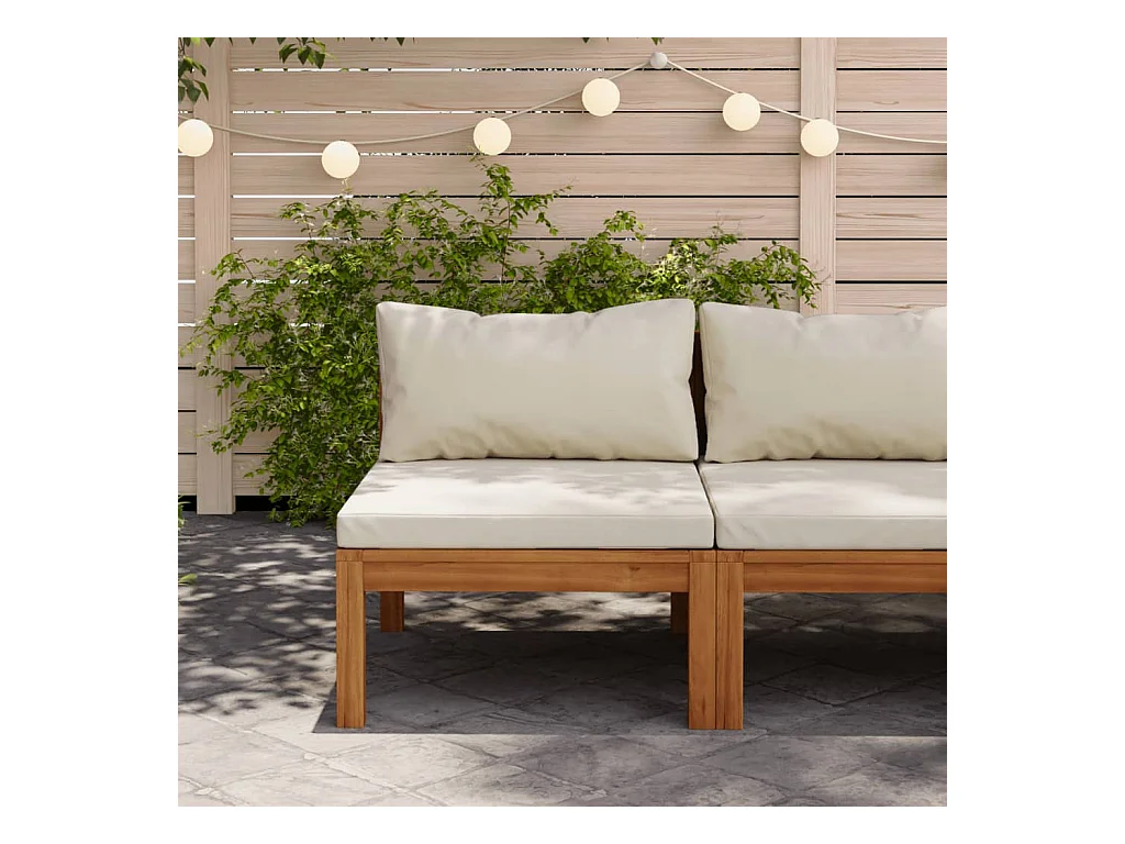 Sofás de centro 2 pcs c/ almofadões branco nata acácia maciça PT956010