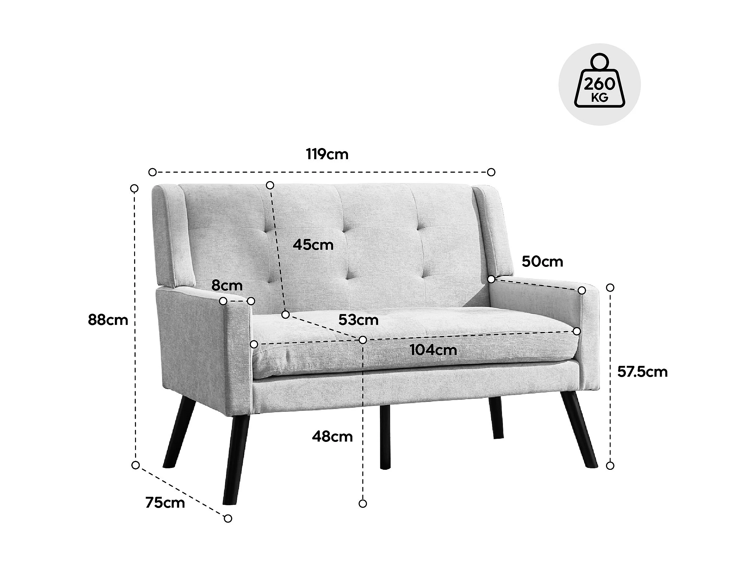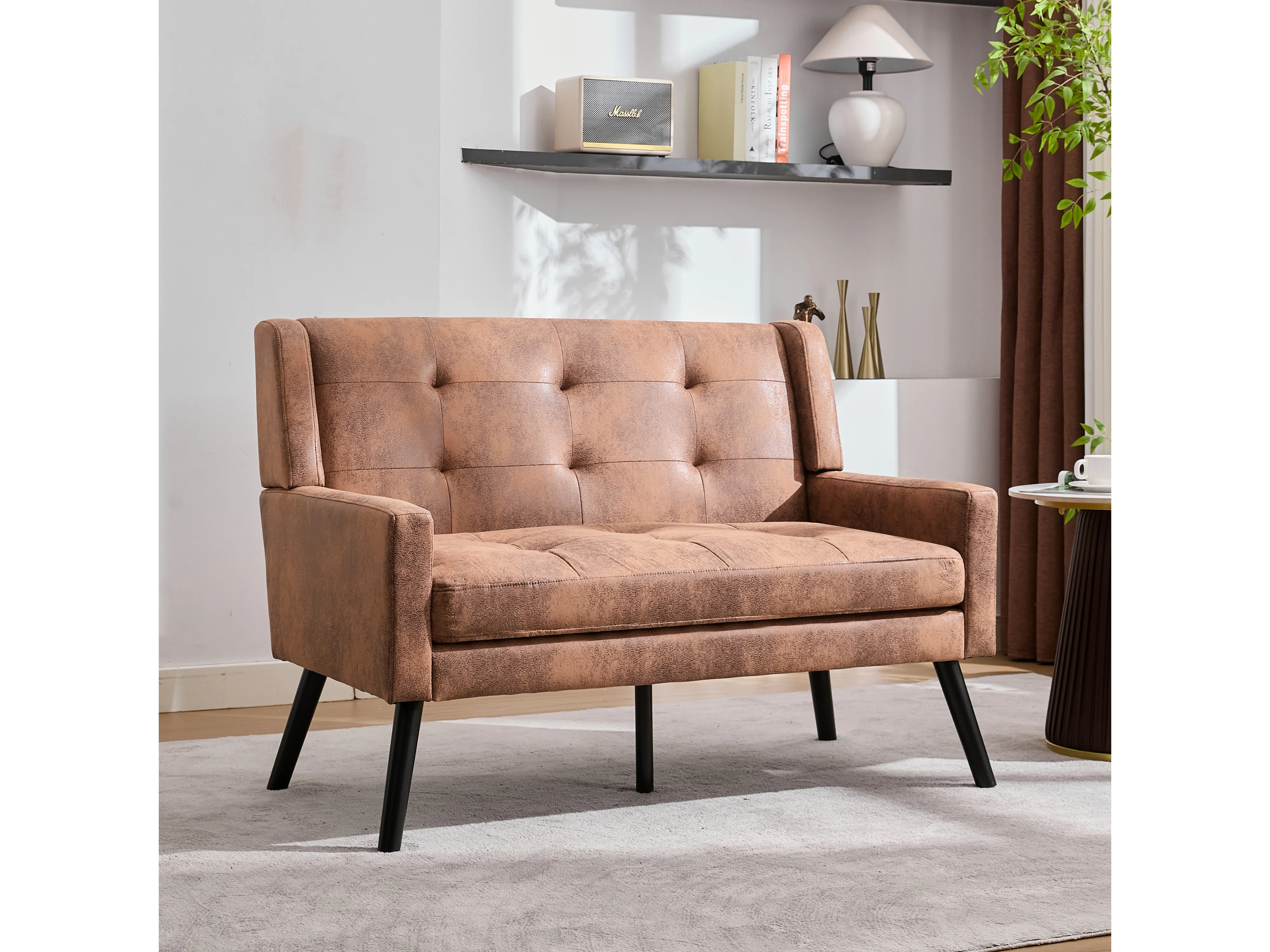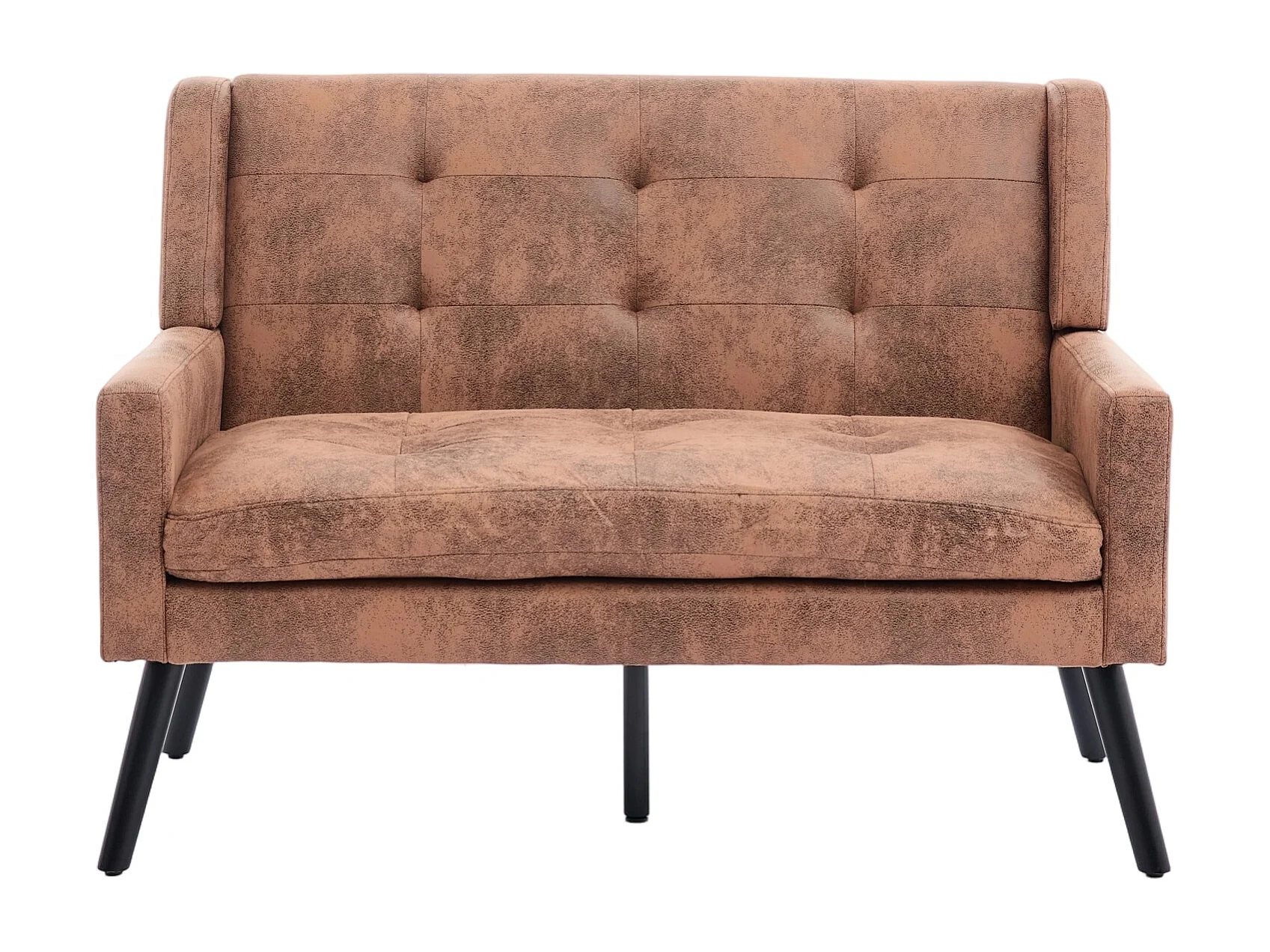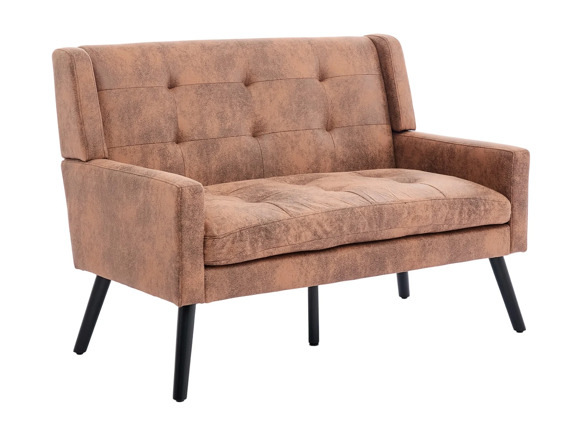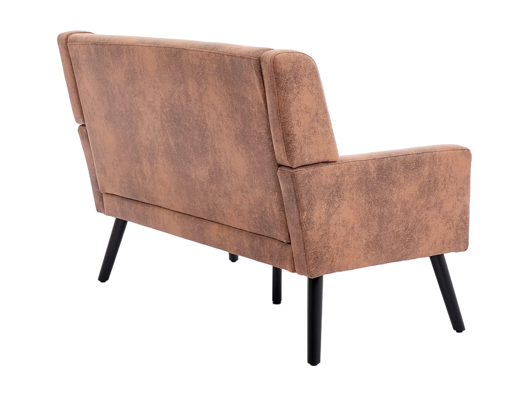 Sofá de dois lugares em tecido camurça com pés em madeira antiderrapantes - Cor café