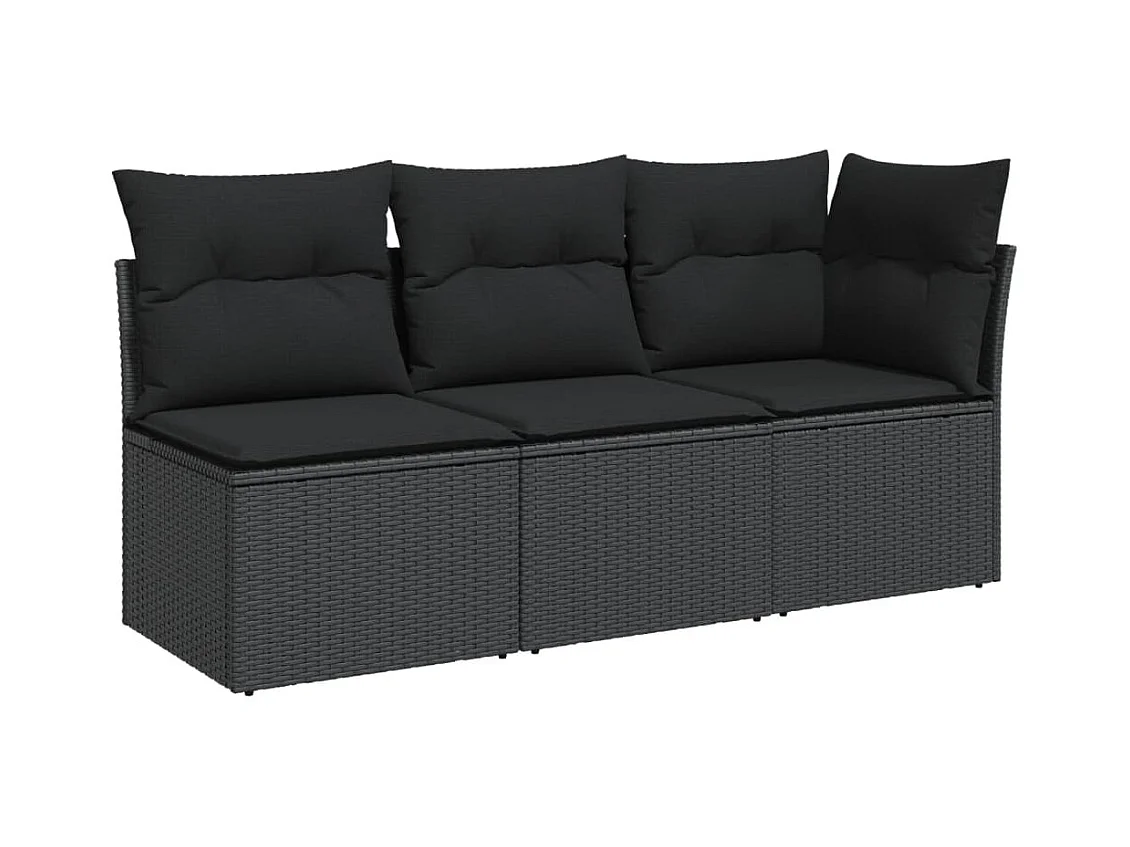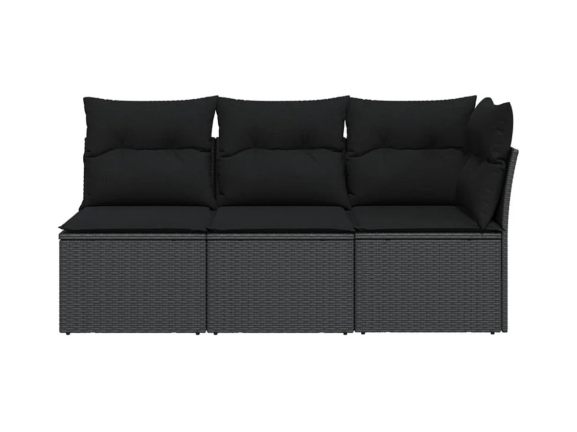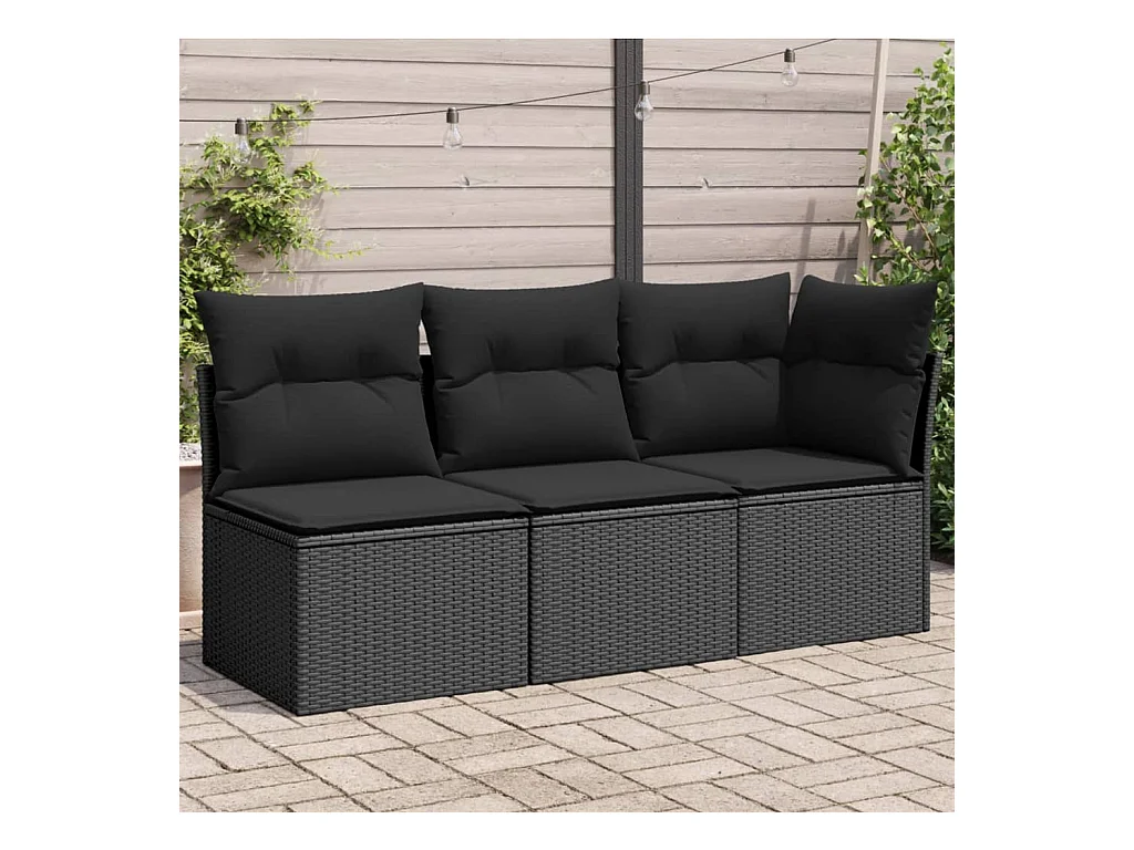 Sofá de jardim 3 lugares com almofadões vime PE preto PT414988