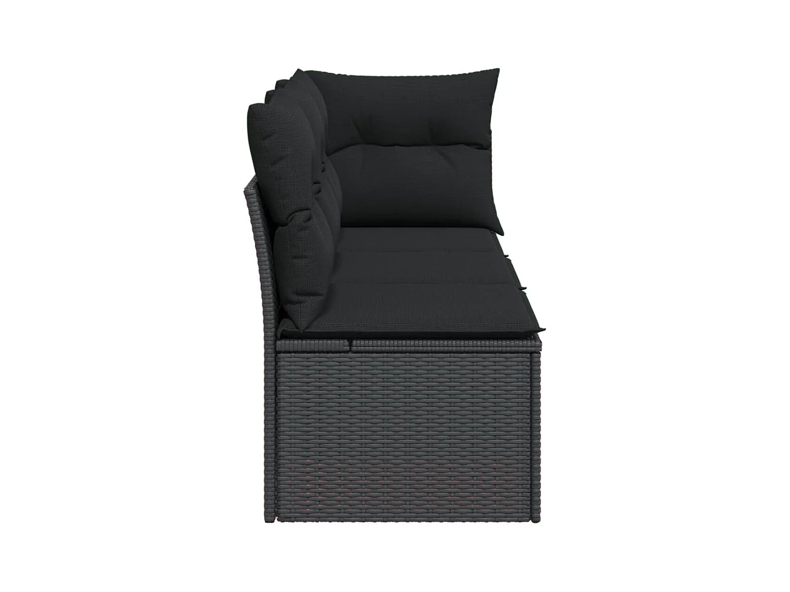 Sofá de canto p/ jardim c/ almofadões vime PE preto PT971927