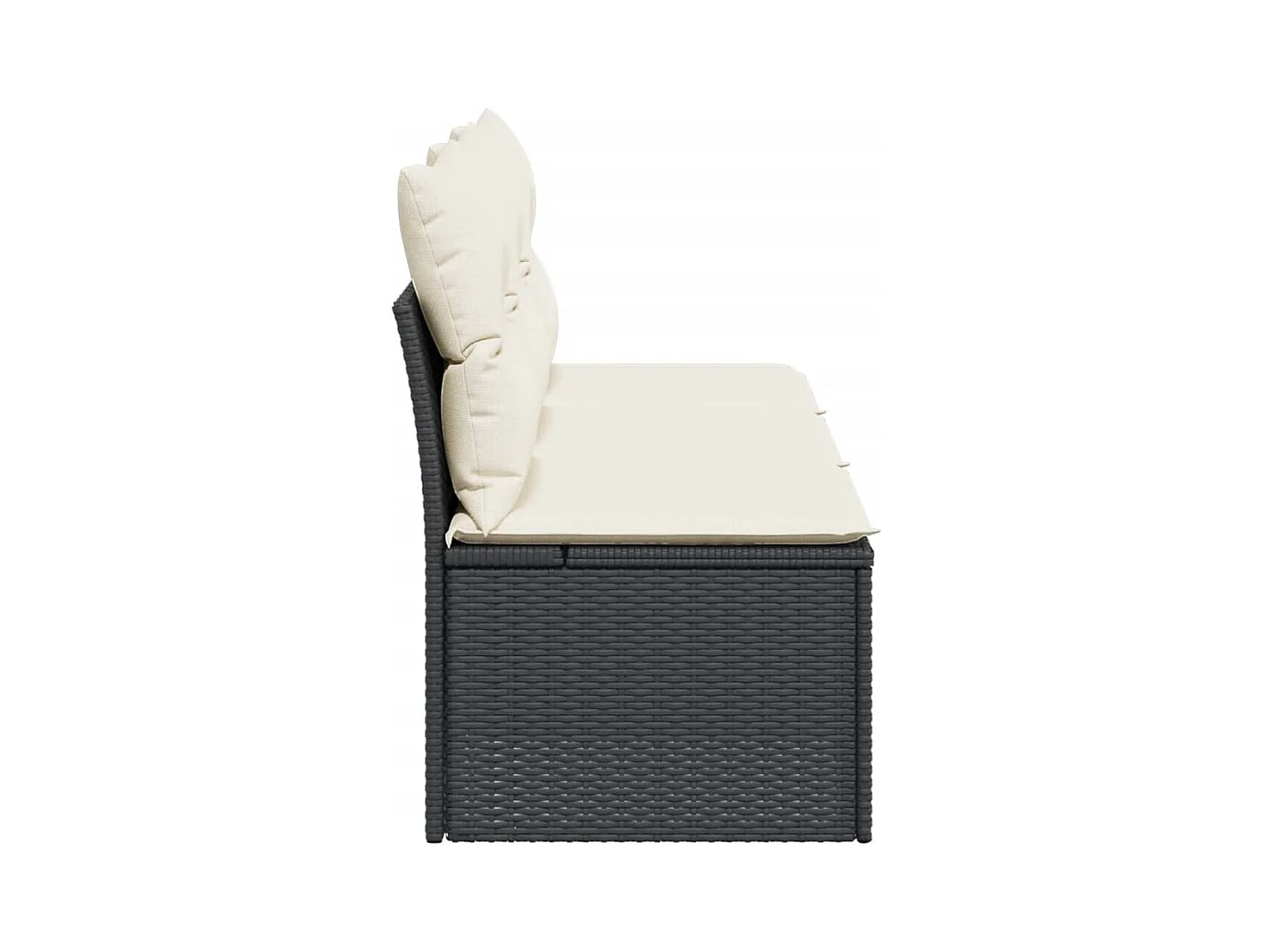 Sofá de jardim 3 lugares com almofadões vime PE preto PT414988