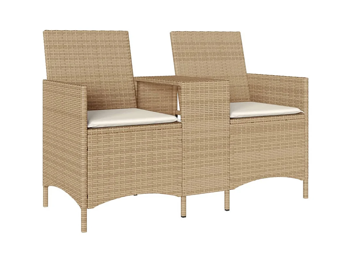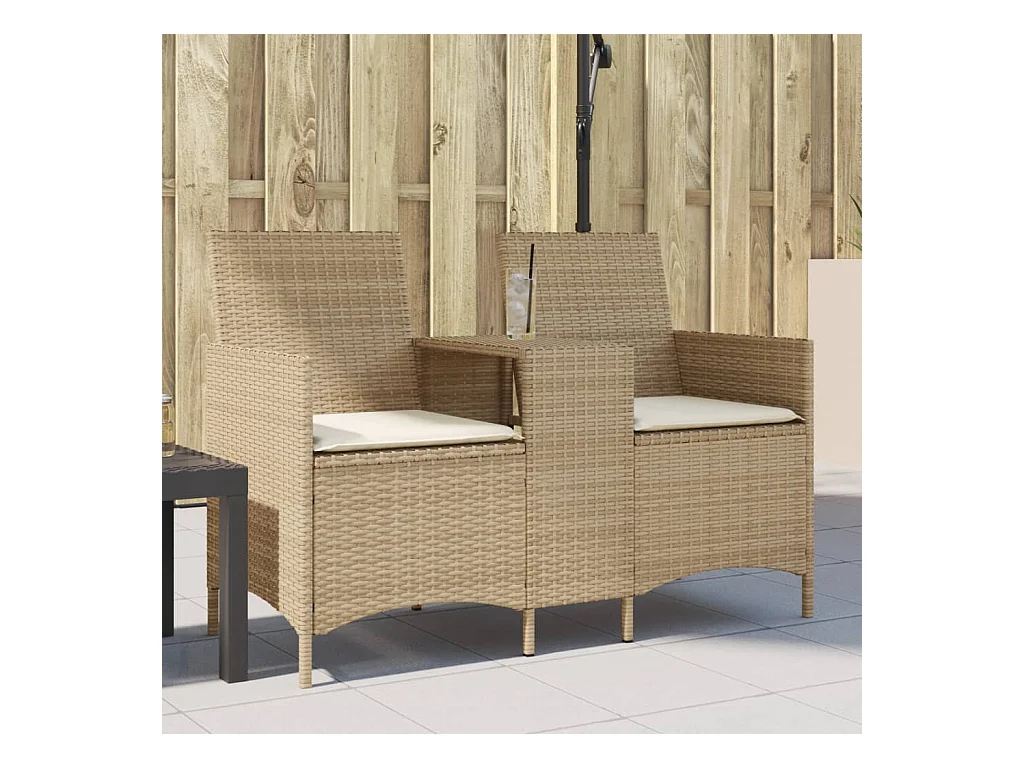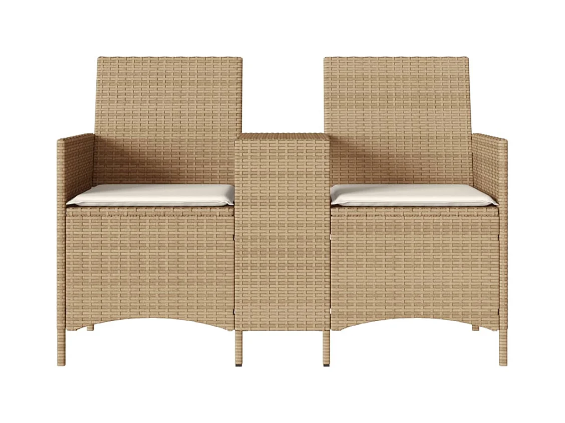 Sofá de jardim c/ mesa e almofadões 2 lugares vime PE bege PT143982