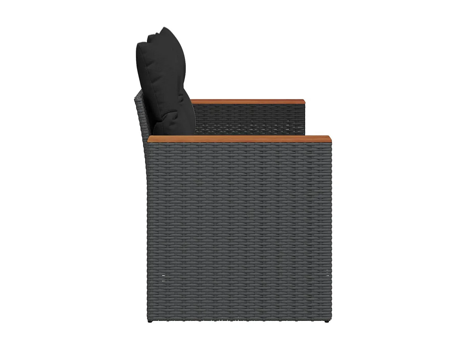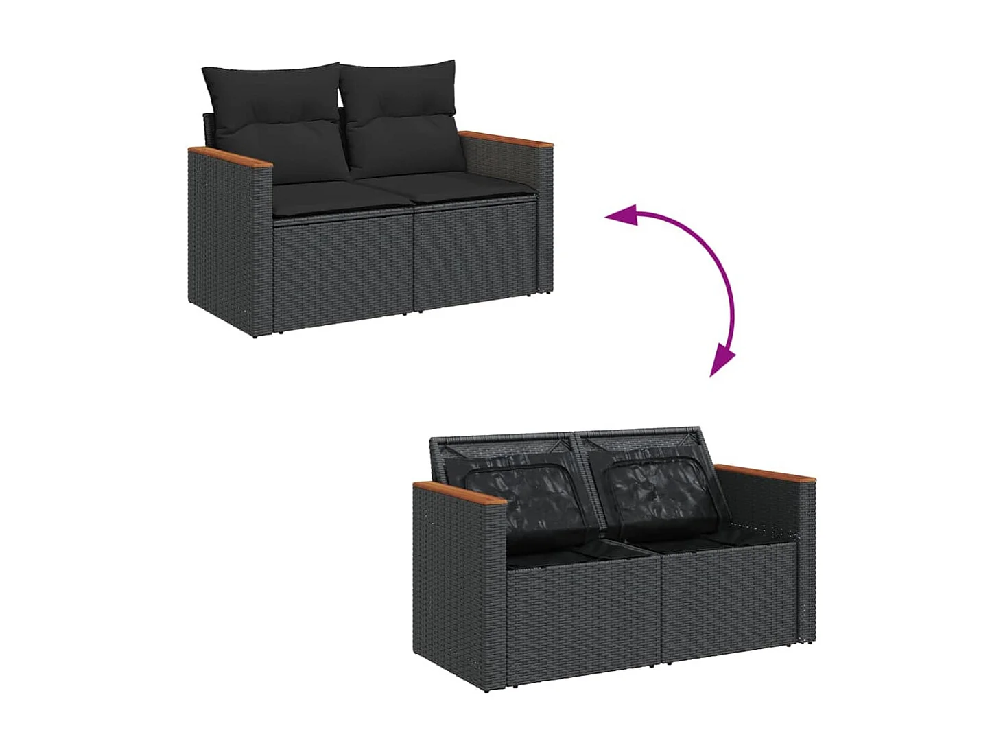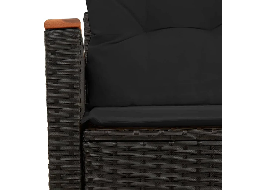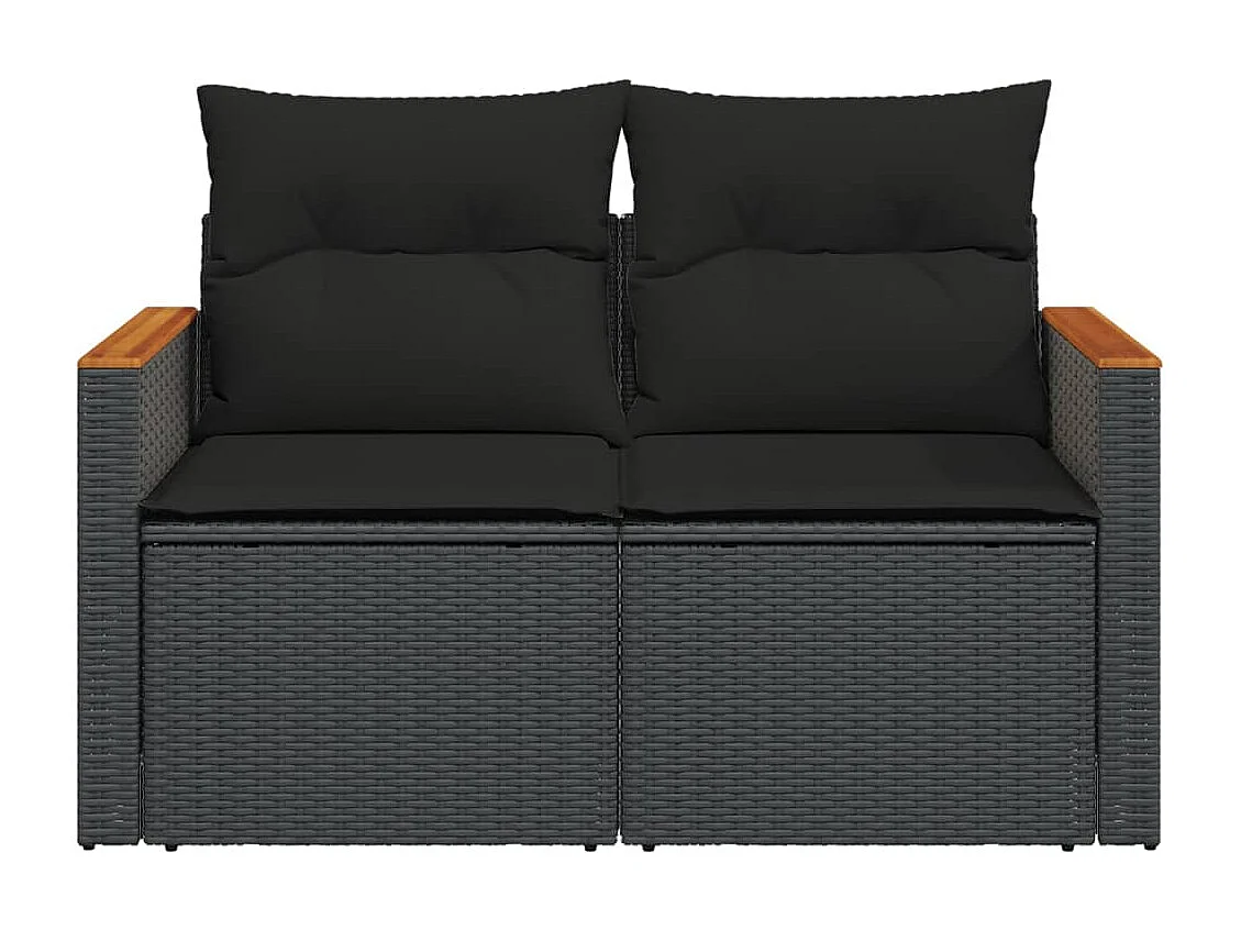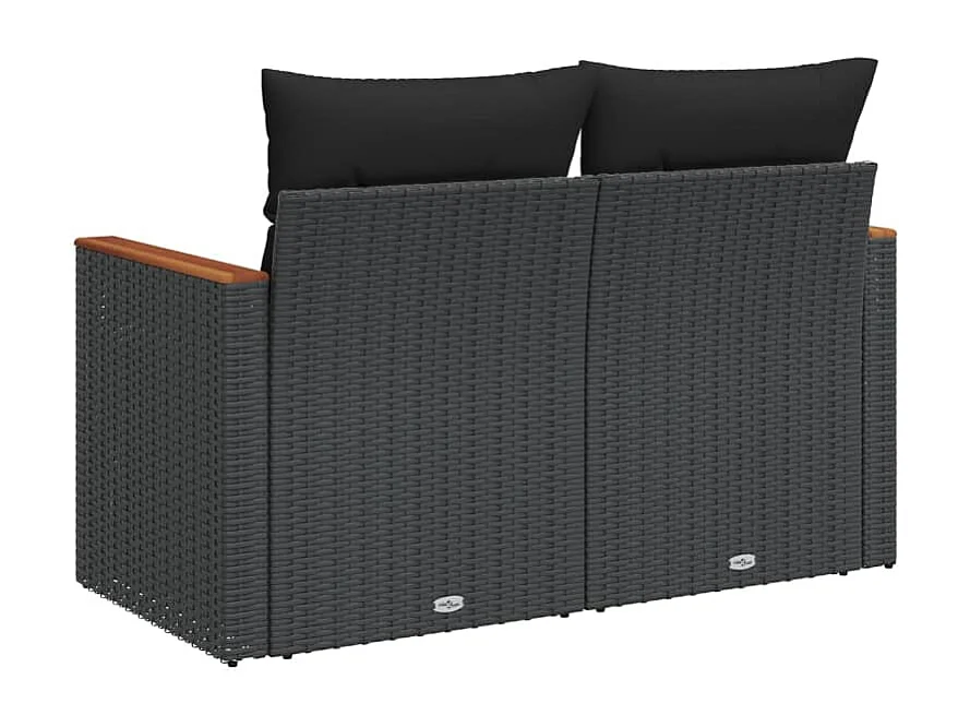 Sofá de jardim de 2 lugares com bancos de resina trançada preta