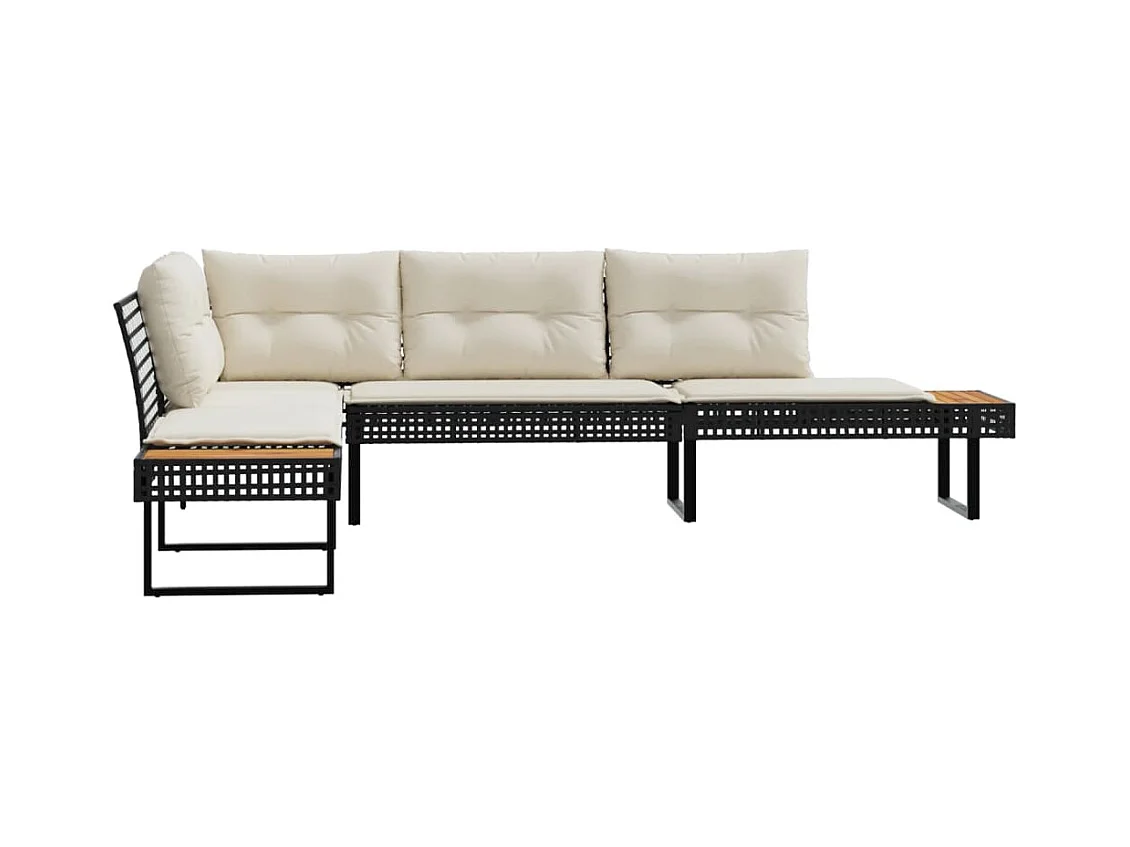 Sofá de jardim com almofadas em forma de L rattan acácia preta